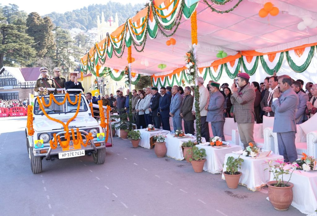 राज्यपाल शिव प्रताप शुक्ल ने ऐतिहासिक रिज शिमला में 76वें गणतंत्र दिवस के राज्य स्तरीय समारोह में राष्ट्रीय ध्वज फहराया।उन्होंने 22,जम्मू एवं कश्मीर राइफल्स के परेड कमांडर लेफ्टिनेंट गगनदीप चौहान के नेतृत्व में शानदार मार्च पास्ट की सलामी ली।