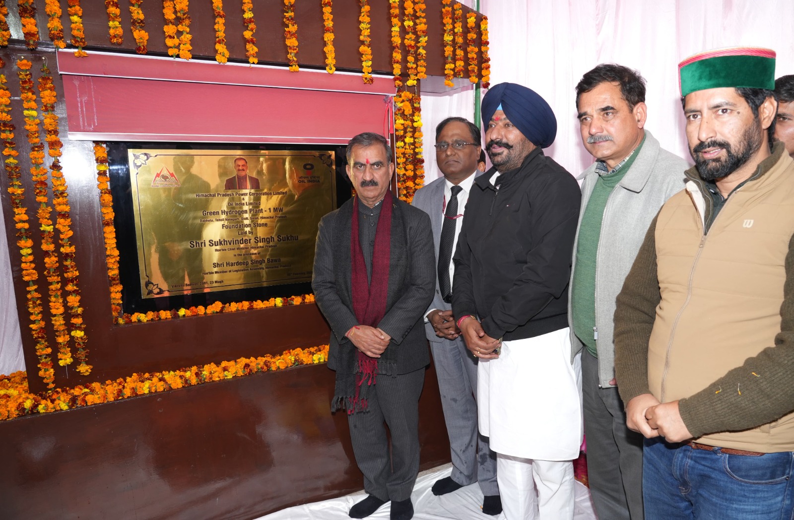 मुख्यमंत्री ठाकुर सुखविंद्र सिंह सुक्खू ने जिला सोलन की नालागढ़ तहसील के दभोटा में उत्तर भारत के पहले एक मेगावाट क्षमता के ग्रीन हाईड्रोजन संयंत्र की आधारशिला रखी।उन्होंने कहा कि 9.04 करोड़ रुपये की इस महत्वाकांक्षी परियोजना को हिमाचल प्रदेश पावर कार्पोरेशन लिमिटेड द्वारा ऑयल इंडिया लिमिटेड के संयुक्त तत्वावधान से विकसित किया जा रहा है।उन्होंने अधिकारियों को एक वर्ष की समयावधि के भीतर इस परियोजना को पूरा करने के निर्देश दिए।इस अवसर पर मुख्यमंत्री ने हिमाचल प्रदेश को मार्च,2026 तक देश के प्रथम हरित ऊर्जा राज्य के रूप में स्थापित करने की प्रतिबद्धता को दोहराया।उन्होंने कहा कि दभोटा हरित ऊर्जा संयंत्र प्रदेश की नवीकरणीय ऊर्जा की सतत यात्रा में मील पत्थर साबित होगा।