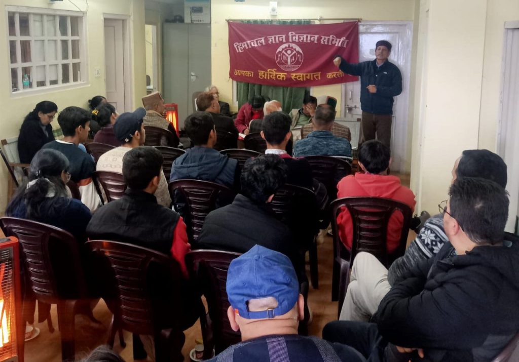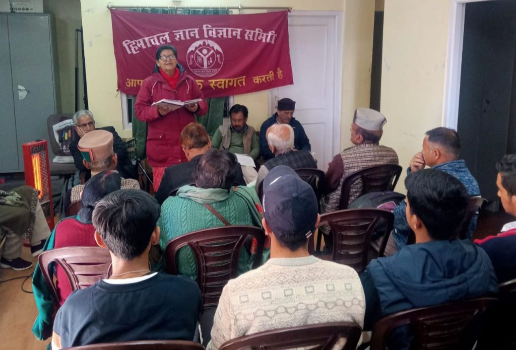 हिमाचल ज्ञान विज्ञान समिति शिमला इकाई की बैठक जिलाध्यक्ष जीयानन्द शर्मा की अध्यक्षता में हुई।बैठक में स्वास्थ्य,जलवायु परिवर्तन,शिक्षा जैसे अहम मुद्दों पर चर्चा हुई।समिति ने नशे से लगातार हो रही मौतों पर चिंता जताई और सरकार से इसे रोकने के लिए ठोस नीति बनाने का आहवान किया।समिति ने हाल ही में संजौली क्षेत्र में नशे के कारण हुई दो नौजवानों की मौत पर भी शोक प्रकट किया।समिति की जिला सचिव सुमित्रा चंदेल ने कहा कि यह सही है कि पुलिस प्रशासन लगातार नशे के खिलाफ कार्यवाही कर रहा है और नशा तस्करों को पकड़ रहा है लेकिन सप्लाई चेन पर प्रहार के साथ-साथ अगर नशे की मांग को कम करने के प्रयास न किए गए तो यह मुहिम अधूरी है।उन्होंने कहा कि इसके लिए समाज को सचेत होना बहुत ज़रूरी है।चंदेल ने कहा कि हिमाचल ज्ञान विज्ञान समिति आगामी 8 मार्च अंतरराष्ट्रीय महिला दिवस पर शिमला में एक रैली का आयोजन करेगी।इस दौरान दवा विक्रेताओं व्यापार मण्डल और सामाजिक न्याय एवं अधिकारिता विभाग से भी अपील की जाएगी कि वे नशे को रोकने में सहयोग करें।बिना डॉक्टर की पर्ची के कोई भी ऐसी दवा न बेचे जिससे नशा होता हो।पान-मसाला की दुकानों से भी अपील की जाएगी।