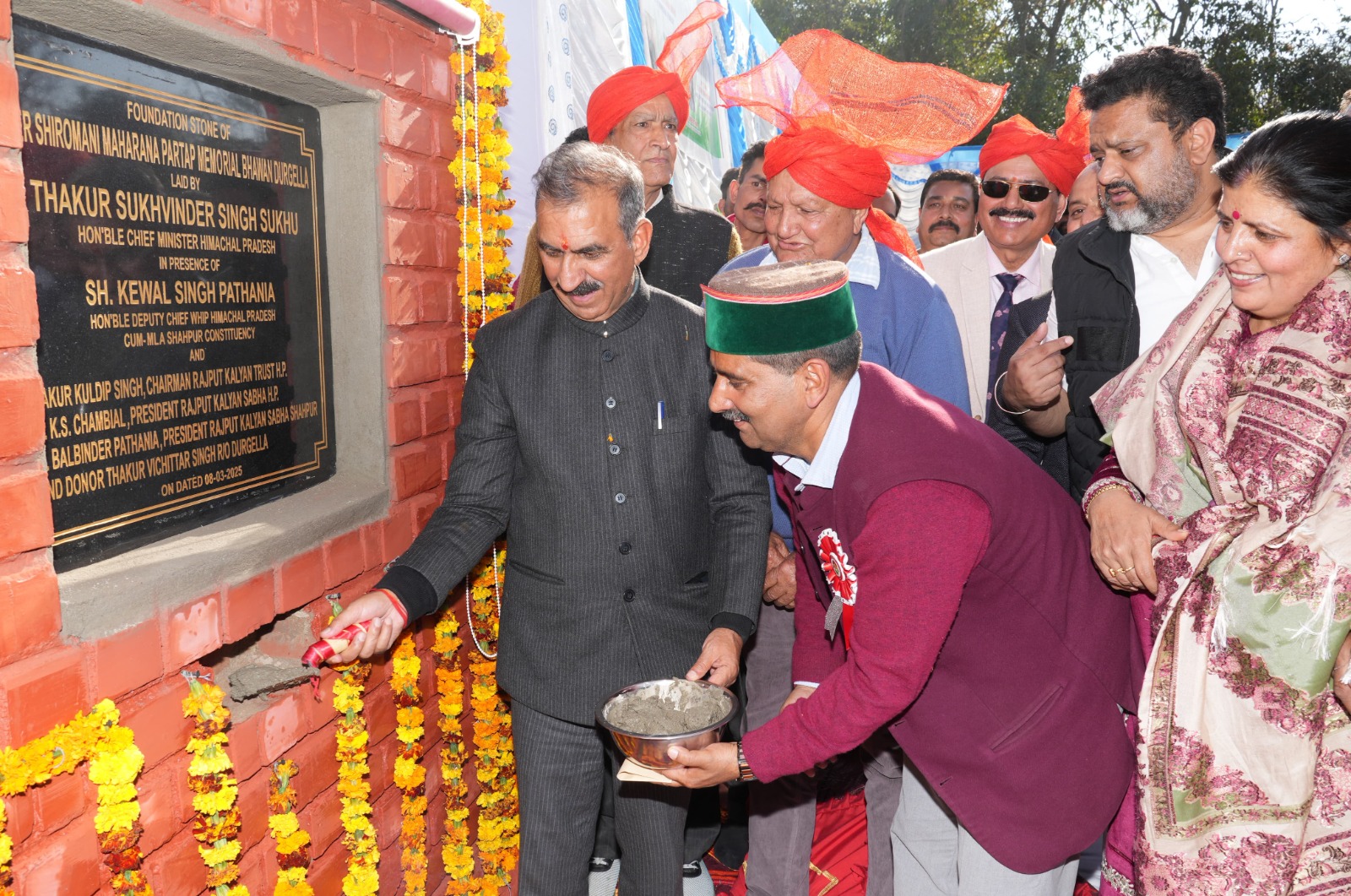मुख्यमंत्री ठाकुर सुखविंद्र सिंह सुक्खू ने शाहपुर विधानसभा क्षेत्र में वीर शिरोमणि महाराणा प्रताप स्मारक भवन का शिलान्यास किया।इस अवसर पर उन्होंने कहा कि कांग्रेस सरकार आम लोगों की सरकार है।वर्तमान प्रदेश सरकार सुशासन सुनिश्चित करने के लिए नीतिगत बदलाव कर रही है।उन्होंने कहा कि बदलाव के साथ चुनौतियां भी आ रही हैं लेकिन हर चुनौती का डटकर सामना किया जा रहा है।मुख्यमंत्री ने कहा कि ग्रामीण क्षेत्रों में विद्यार्थियों को भविष्य की चुनौतियों के लिए तैयार करने के लिए विश्वस्तरीय बुनियादी ढांचा विकसित किया जा रहा है।उन्होंने कहा कि शाहपुर विधानसभा क्षेत्र में शीघ्र ही राजीव गांधी डे-बोर्डिंग स्कूल भी स्थापित किया जाएगा।उन्होंने आगे कहा कि प्रदेश सरकार न केवल शिक्षा बल्कि स्वास्थ्य क्षेत्र में भी सुधार कर रही है।पिछले दो वर्षों में भ्रष्टाचार पर अंकुश लगाकर सरकार ने 2,600 करोड़ रुपये का अतिरिक्त राजस्व अर्जित किया है जिससे प्रदेश की जनता के लिए कल्याणकारी योजनाएं क्रियान्वित की जा रही हैं।
