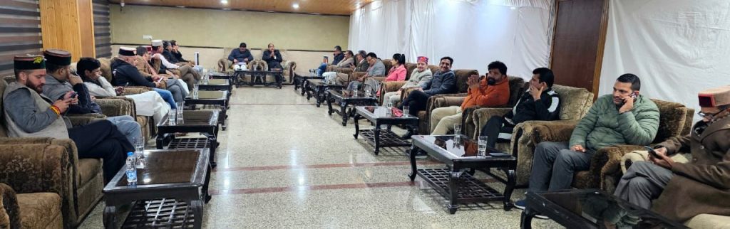 भाजपा विधायक दल की बैठक नेता प्रतिपक्ष जयराम ठाकुर की अध्यक्षता में होटल ध्रुव में संपन्न हुई,बैठक में अनिल शर्मा को छोड़ कर सभी विधायक उपस्थित रहे।नैना देवी से विधायक रणधीर शर्मा ने बताया कि भाजपा चर्चा के माध्यम से सरकार को घेरेगी चाहे वह राज्यपाल का भाषण हो या बजट पर चर्चा।सत्र में सरकार की नाकामियों,जन विरोधी निर्णयों एवं भ्रष्टाचार के मुद्दों को प्रखरता से उठाया जाएगा और पूरी तरह से वर्तमान कांग्रेस सरकार को बैक फुट पर धकेलना का काम भारतीय जनता पार्टी द्वारा किया जाएगा।रणधीर ने कहा कि हिमाचल प्रदेश में आर्थिक दिवालियापन सबसे बड़ा मुद्दा है और हिमाचल प्रदेश में वेतन,पेंशन,बुजुर्गों को दिए जाने वाली धनराशि सभी को लेकर चिंता बरकरार है।हिमाचल प्रदेश की वित्तीय स्थिति इतनी खराब हो गई है कि केंद्र के पैसे को वेतन एवं पेंशन देने के लिए इस्तेमाल किया जा रहा है।