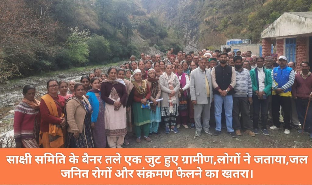 साक्षी समिति के बैनर तले एक जुट हुए ग्रामीण,लोगों ने जताया,जल जनित रोगों और संक्रमण फैलने का खतरा।