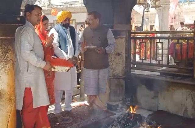पंजाब के मुख्यमंत्री भगवंत मान और उनकी धर्मपत्नी डॉ.गुरप्रीत कौर विश्व विख्यात शक्तिपीठ श्री नयनादेवी मंदिर में नवरात्र के दौरान पूजा-अर्चना करने पहुंचे।इस दौरान उन्होंने प्राचीन हवन कुंड में आहुतियां भी डालीं।मंदिर न्यास की तरफ से उन्हें माता की चुनरी और फोटो भेंट करके सम्मानित किया गया।मुख्यमंत्री भगवंत मान ने पत्रकारों द्वारा पूछे गए सवाल का जवाब देते हुए कहा कि चाहे कोई भी विवाद हो,लेकिन हिमाचल और पंजाब दोनों राज्य आपस में भाई-भाई की तरह रहे हैं और हमेशा हमारा सोहादपूर्ण व्यवहार रहा है।उन्होंने कहा कि वह हिमाचल प्रदेश में एक कलाकार के रूप में बिलासपुर,कुल्लू,मनाली,शिमला हर जगह अपनी प्रस्तुतियां देते रहे हैं और हिमाचल के साथ उनका बहुत अच्छा व्यवहार है।नशा विरोधी अभियान पर बोलते हुए भगवंत मान ने कहा कि कभी पंजाब के युवा सेना में अपनी पहचान बनाते थे,लेकिन समय के साथ नशे की गिरफ्त में आ गए थे।अब सरकार ने हालात पर काबू पाया है और नशे के खिलाफ सख्त कदम उठाए जा रहे हैं।उन्होंने यह भी कहा कि श्री नयनादेवी और श्री आनंदपुर साहिब को जोड़ने वाले प्रस्तावित रज्जू मार्ग (रोपवे) पर जल्द ही दोनों राज्यों के अधिकारियों की बैठक बुलाई जाएगी,ताकि यह परियोजना मूर्त रूप ले सके।भगवंत मान ने कहा कि वह माता के दरबार में आज नवरात्र पूजन के लिए अपने धर्मपत्नी के साथ आए हैं।माता रानी से दुआ की है कि सर्वत्र का भला हो और माता रानी की कृपा से सब का कल्याण हो।