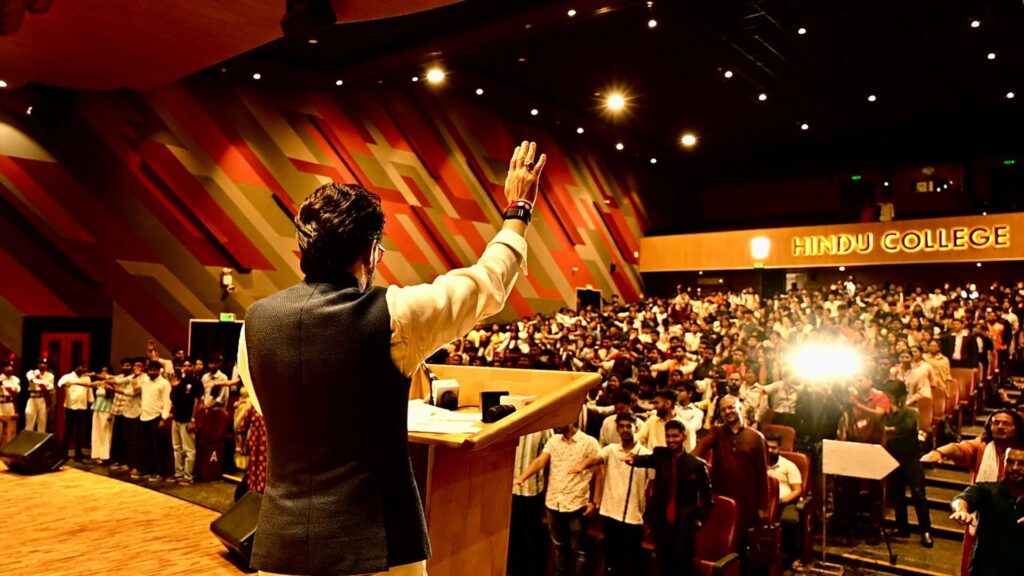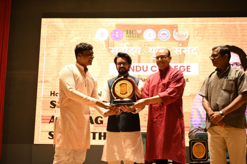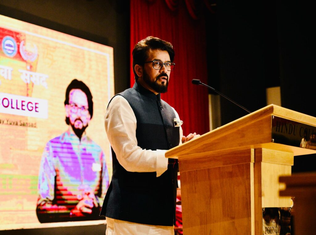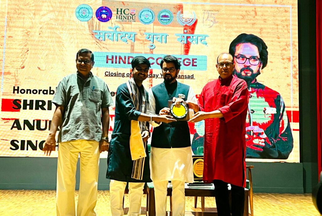 पूर्व केंद्रीय मंत्री व हमीरपुर लोकसभा क्षेत्र से सांसद अनुराग सिंह ठाकुर ने दिल्ली में विश्वप्रसिद्ध हिन्दू कॉलेज में सर्वोदय युवा संसद में देश भर से आए छात्रों को विकसित भारत थीम पर आयोजित कार्यक्रम के अन्तर्गत संबोधित किया और विभिन्न प्रतियोगिताओं के प्रतिभागी/विजेता छात्रों को सम्मानित किया।अनुराग सिंह ठाकुर ने कहा “पिछले एक दशक से,प्रधानमंत्री नरेन्द्र मोदी युवाओं को एक मंच पर संगठित कर उनकी सामूहिक क्षमता का उपयोग कर भारत को विकसित राष्ट्र बनाने के एक महत्वपूर्ण मिशन पर काम कर रहे हैं,पीएम मोदी का इरादा है देशभर से एक लाख गैर-राजनीतिक युवा व्यक्तियों को राजनीतिक प्रणाली में शामिल करना,जिससे वे भी राष्ट्र निर्माण में सक्रिय योगदान दे सकें।