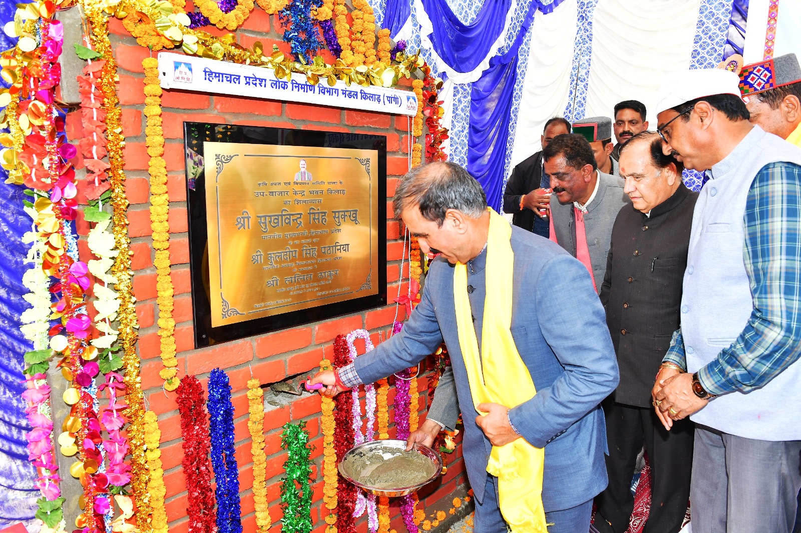 मुख्यमंत्री ठाकुर सुखविंद्र सिंह सुक्खू ने जिला चम्बा के पांगी प्रवास के दौरान क्षेत्रवासियों के लिए करोड़ो रुपये लागत की 14 विकासात्मक परियोजनाओं के उद्घाटन व शिलान्यास किए।मुख्यमंत्री किलाड़ में 3.75 करोड़ रुपये लागत के कृषि विभाग के आवासीय कमरों,राजकीय उच्च विद्यालय लुज में 1.5 करोड़ रुपये लागत से बनने वाले अतिरिक्त कमरों,राजकीय उच्च विद्यालय मिंधल में 1.5 करोड़ रुपये की लागत के अतिरिक्त कमरों,किलाड़ में 2.13 करोड़ रुपये की लागत के मार्केट यार्ड,किलाड़ में 49.42 लाख रुपये लागत के राज्य विद्युत बोर्ड लिमिटेड के नए कार्यालय,1.99 करोड़ रुपये की लागत से निर्मित होने वाले स्वास्थ्य उप-केन्द्र रेई तथा 1.99 करोड़ रुपये की लागत के स्वास्थ्य उप-केन्द्र हुडान का शिलान्यास किया।