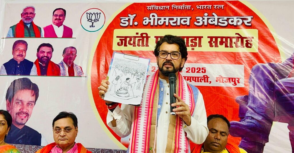अनुराग सिंह ठाकुर ने कहा “बाबा साहेब भीमराव अंबेडकर को दो लोकसभा चुनावों में हार का सामना करना पड़ा था,दोनों बार उन्हें कांग्रेस प्रत्याशी ने ही हराया था,खास बात ये है कि इन दोनों चुनाव में ही तत्कालीन प्रधानमंत्री जवाहर लाल नेहरू ने अंबेडकर के खिलाफ चुनाव प्रचार किया था,कांग्रेस ओर अंबेडकर में शुरुआत से ही वैचारिक मतभेद थे,जो समय-समय पर सामने आते रहते थे,1952 के आम चुनावों में बॉम्बे नॉर्थ सेंट्रल से चुनाव लड़ा था।अशोक मेहता के नेतृत्व वाली सोशलिस्ट पार्टी ने उनका समर्थन किया था। कांग्रेस ने उन्हें हराने के लिए अज्ञात उम्मीदवार नारायण कजरोलकर को उम्मीदवार बनाया।इस सीट से अंबेडकर कांग्रेस के नारायण काजरोलकर से 15,000 वोटों से हार गए।इतना ही नहीं,हार के बाद अंबेडकर ने नतीजों पर सवाल उठाए।बाबा साहेब के अनुसार कुल 74,333 मतों को खारिज कर दिया गया और उनकी गिनती नहीं की गई जिसके लिये उन्होंने मुख्य चुनाव आयुक्त के समक्ष याचिका भी दायर की,1954 में बाबा साहेब ने दूसरा चुनाव महाराष्ट्र के भंडारा निर्वाचन क्षेत्र से लड़ा था।नेहरू की निजी दिलचस्पी के चलते वो इस बार कांग्रेस उम्मीदवार से करीब 8,500 वोटों से हार गए।बाबा साहेब की इस हार पर समाजवादी नेता जयप्रकाश नारायण ने भी चुनाव की निष्पक्षता पर सवाल उठाया था।ख़ुद नेहरू ने एडविना माउंटबेटन को लिखे पत्र में गर्व से बताया था कि कैसे उन्होंने अंबेडकर को संसद में चुने जाने से रोकने में अपनी भूमिका निभाई थी।