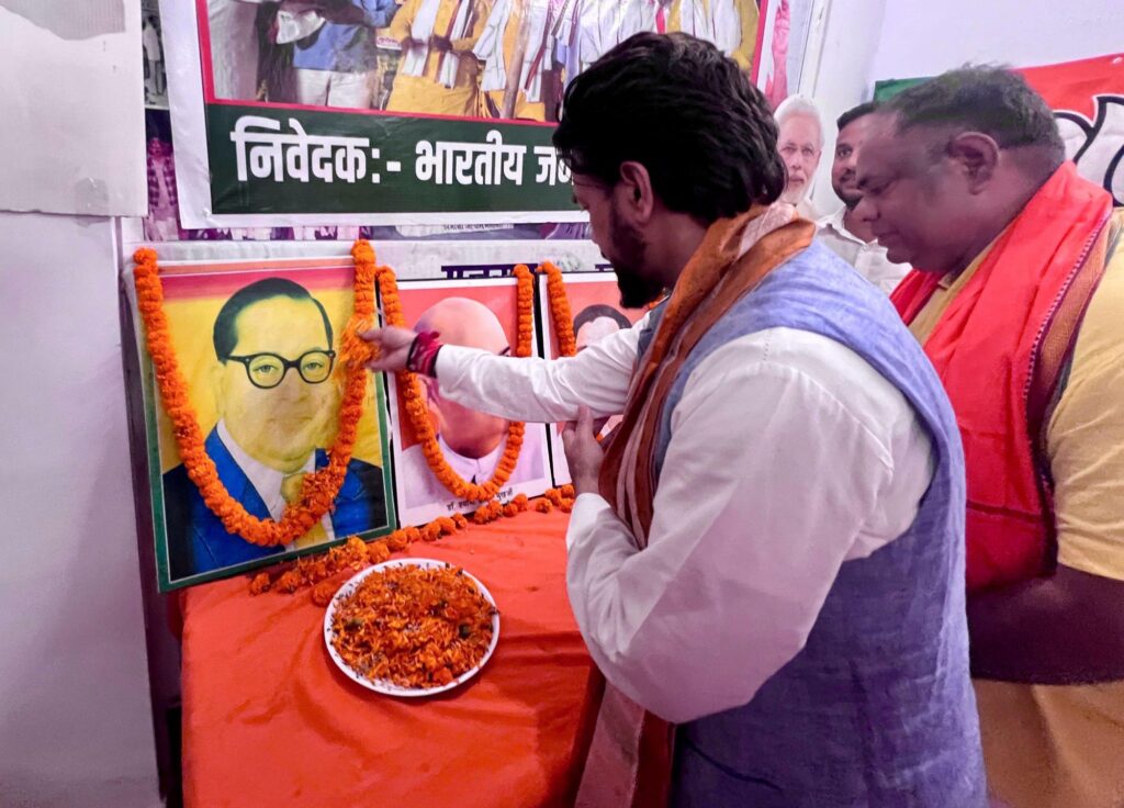 अनुराग सिंह ठाकुर ने कहा “1951 में नेहरू मंत्रिमंडल से इस्तीफ़ा देते हुए बाबा साहेब ने कहा था कि नेहरू ने उन्हें आर्थिक नीतियों और कैबिनेट संस्थानों से दूर रखने का हरसंभव प्रयास किया और दलितों के मुद्दे की उपेक्षा कर सारा ध्यान मुस्लिम तुष्टिकरण पर दिया।बाबा साहेब कश्मीर मुद्दे और नेहरू की विदेश नीति का पुरज़ोर विरोध करते थे।कांग्रेस ने बाबा साहेब के महापरिनिर्वाण के बाद दिल्ली में उनकी अंत्येष्टि की अनुमति नहीं दी बल्कि उनकी पार्थिव देह को मुंबई ले जाने के लिए कोई राजकीय विमान भी नहीं दिया।कांग्रेस ने तो उनके दिल्ली स्थित आवास को स्मारक घोषित करने से भी इंकार कर दिया था जिसे 2018 में में मोदी सरकार ने श्रद्धांजलि स्थल के रूप में राष्ट्र को समर्पित किया।कांग्रेस तो पूर्वी पाकिस्तान से आये शरणार्थियों का पुनर्वास करने में भी विफल रही थी।इन समुदायों को वास्तविक लाभ मोदी सरकार के 2019 में लाये CAA क़ानून से मिला”अनुराग सिंह ठाकुर ने कहा “ बाबा साहेब डॉक्टर भीमराव अंबेडकर जी के धरोहरों व उनके मूल्यों को सहेजने का काम सिर्फ़ भारतीय जनता पार्टी ने किया है।जिस व्यक्ति को संविधान निर्माता कहा जाता है कांग्रेस ने दीवार पर जगह नहीं होने का हवाला देकर उन्हीं की कोई तस्वीर संसद के केंद्रीय कक्ष में लगाने की माँग को हमेशा खारिज किया,1989 में जब भारतीय जनता पार्टी की समर्थित राष्ट्रीय मोर्चा सरकार बनी तो पूर्व प्रधानमंत्री अटल बिहारी वाजपेयी और लालकृष्ण आडवाणी ने पहल कर संसद के केंद्रीय कक्ष में बाबा साहेब का चित्र शामिल कराया।कांग्रेस बाबा साहेब से इतना नफ़रत करती थी कि उसने बाबा साहेब के देहांत के बाद भी कोई राष्ट्रीय स्मारक नहीं बनने दिया।वहीं दूसरी ओर मोदी सरकार ने बाबा साहेब आंबेडकर को उचित सम्मान देते हुए उनके जन्म स्थान महू में बाबा साहेब का राष्ट्रीय स्मारक बनवाया”अनुराग सिंह ठाकुर ने कहा “बाबा साहेब अंबेडकर की जन्मस्थली,शिक्षस्थली,दीक्षा स्थली और उनसे जुड़े सभी स्थलों का पंच तीर्थ के रूप में विकास किया है।यह हमारी ही सरकार है जिसने संविधान दिवस मनाया और बाबा साहब भीमराव अंबेडकर की जयंती को राष्ट्रीय अवकाश के रूप में घोषित किया।बाबा साहब को भारत रत्न भी गैर कांग्रेसी सरकार में मिला।
