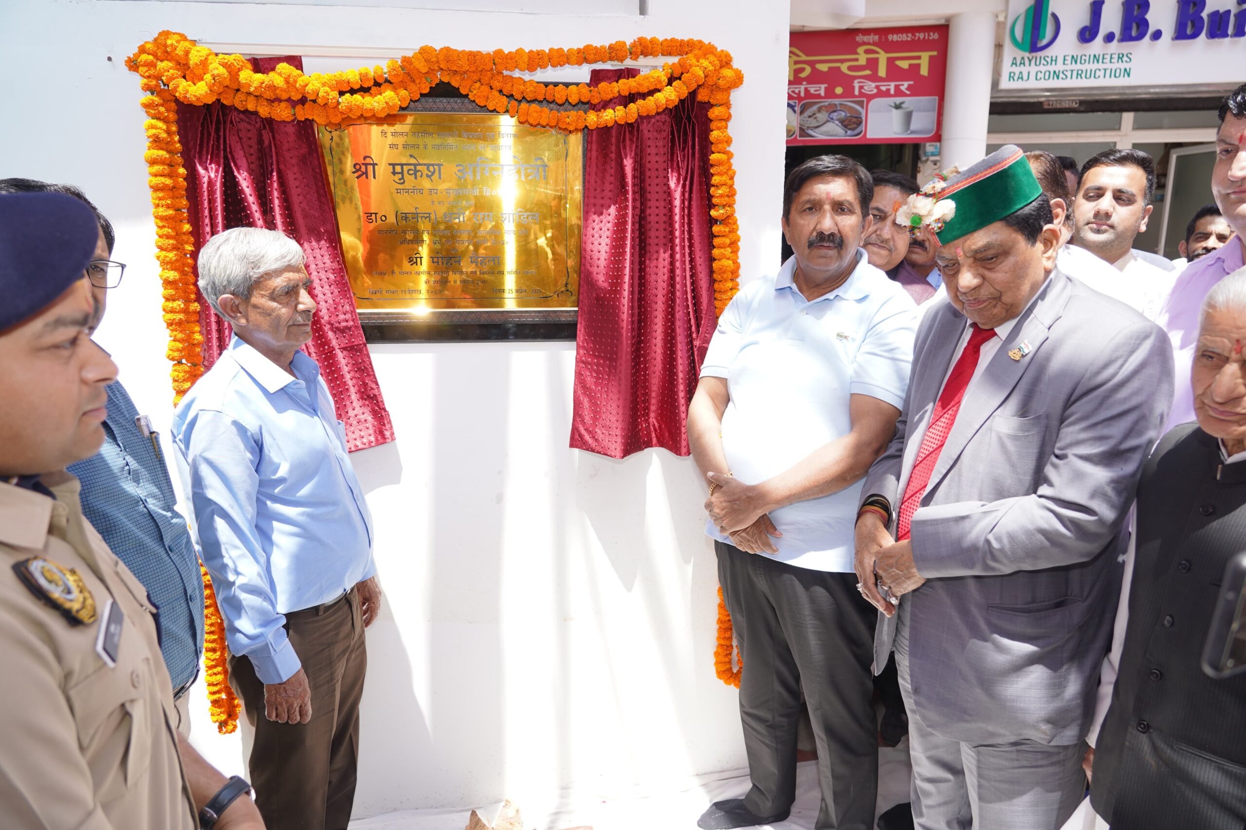 स्वास्थ्य एवं परिवार कल्याण,सामाजिक न्याय एवं अधिकारिता तथा सैनिक कल्याण मंत्री कर्नल डॉ.धनीराम शांडिल ने सहकारी विपणन एवं वितरण संघ के सदस्यों को व्यवसायिक परिसर के निर्माण के लिए बधाई दी।उन्होंने कहा कि यह व्यवसायिक परिसर संघ के लिए आय का साधन बनेगा साथ ही युवाओं को रोज़गार भी उपलब्ध करवाएगा।उन्होंने कहा कि सहकारी क्षेत्र के माध्यम से शिक्षित और बेरोज़गार युवा अपनी आर्थिकी को मज़बूत बनाने का प्रयास कर सकते हैं।इस क्षेत्र में विकास की असीमित सम्भावनाएं है।उन्होंने कहा कि सोलन ज़िला में बेमौसमी सब्जियों के उत्पादन और प्रसंस्करण इकाई के अतिरिक्त स्थानीय कच्चे माल पर आधारित लघु उद्योग सहकारी क्षेत्र में अच्छा कार्य कर सकते है।दी सोलन तहसील सहकारी विपणन एवं वितरण संघ सीमित के अध्यक्ष मोहन लाल मेहता ने इस अवसर पर मुख्यातिथि का स्वागत किया व संघ के कार्यों की रिपोर्ट प्रस्तुत की।इस अवसर पर सहकारी विपणन एवं वितरण संघ सीमित सोलन द्वारा उप मुख्यमंत्री को मुख्यमंत्री राहत कोष के लिए 1.51 लाख रुपए का चैक तथा स्वास्थ्य एवं परिवार कल्याण मंत्री को रोगी कल्याण समिति सोलन के लिए 1.21 लाख रुपए का चैक भेंट किया गया।नगर निगम सोलन की महापौर ऊषा शर्मा,पार्षदगण,बघाट बैंक के अध्यक्ष अरुण शर्मा,जोगिन्द्रा सहकारी बैंक के अध्यक्ष मुकेश शर्मा,प्रदेश खाद्य एवं नागरिक आपूर्ति निगम निदेशक मण्डल के सदस्य जतिन साहनी,कांग्रेस के वरिष्ठ नेता राहुल ठाकुर,सुरेन्द्र सेठी,रमेश ठाकुर,रमेश चौहान,शिव कुमार,कुल राकेश पंत,जगमोहन मल्होत्रा,विकास काल्टा,संधीरा दुल्टा,ग्राम पंचायत नौणी के प्रधान मदन हिमाचली,ग्राम पंचायत सलोगड़ा के पूर्व प्रधान लक्ष्मी दत्त शर्मा,उपायुक्त सोलन मनमोहन शर्मा,पुलिस अधीक्षक सोलन गौरव सिंह,नगर निगम सोलन की आयुक्त एकता काप्टा सहित दी सोलन तहसील सहकारी विपणन एवं वितरण संघ सीमित के संचालक सोम दत्त शर्मा सहित संघ के निदेशक व सदस्य तथा अन्य गणमान्य व्यक्ति इस अवसर पर उपस्थित थे।
