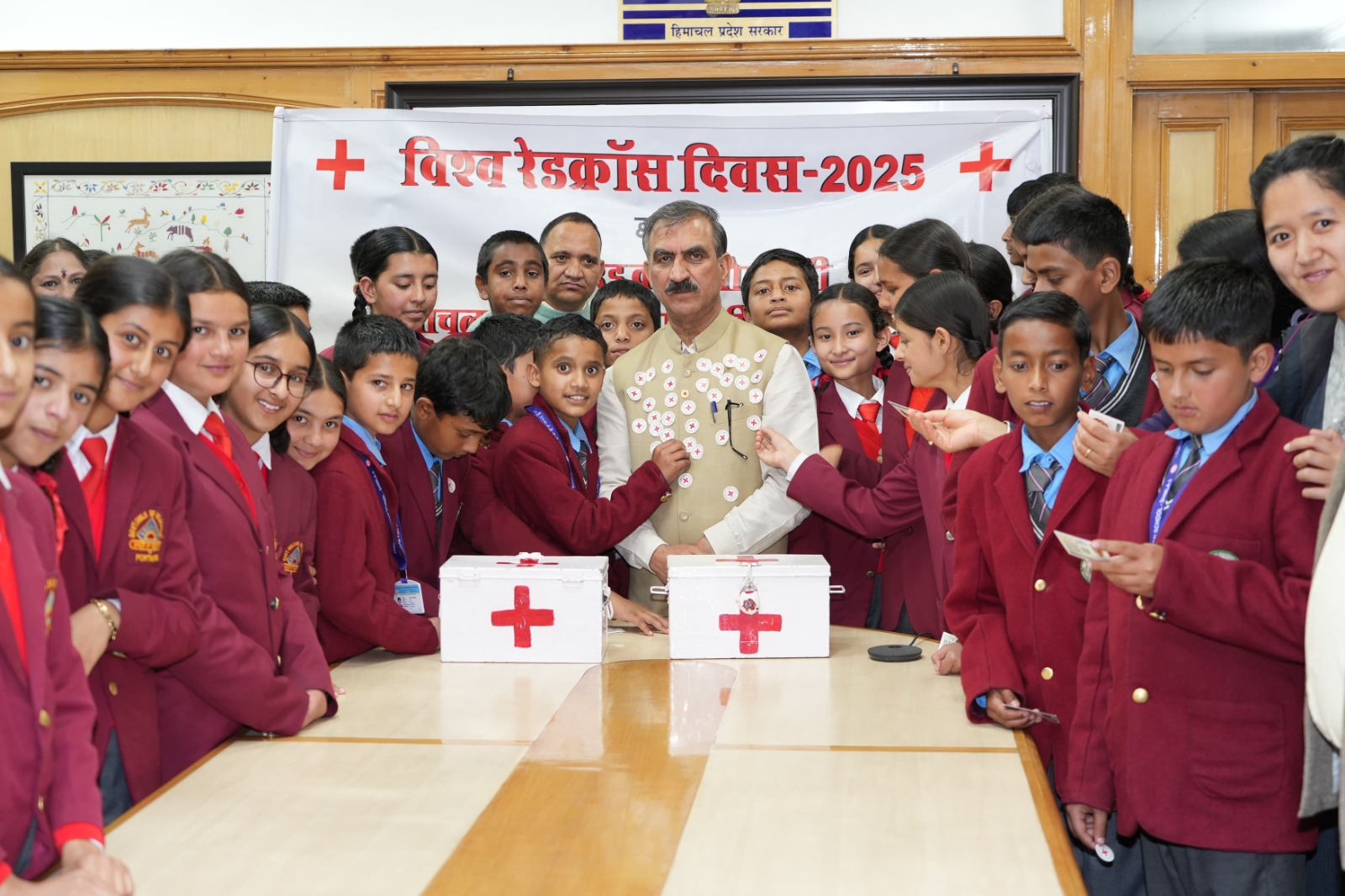 विश्व रेडक्रॉस दिवस-2025 के अवसर पर मुख्यमंत्री ठाकुर सुखविंद्र सिंह सुक्खू से यहां बच्चों और रेडक्रॉस स्वयंसेवकों ने भेंट की।इस अवसर पर उन्होंने मुख्यमंत्री को रेडक्रॉस के स्टिकर भेंट किए।मुख्यमंत्री ने रेडक्रॉस कोष में योगदान दिया और लोगों से भी इस कोष में उदारतापूर्वक अंशदान का आह्वान किया।
