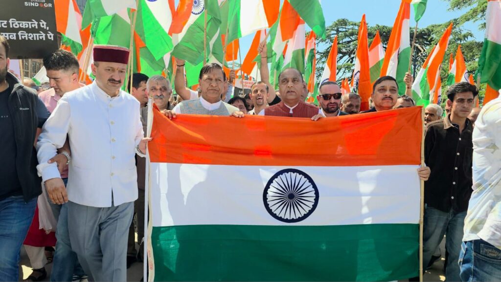 नेता प्रतिपक्ष जयराम ठाकुर ने कहा है कि भारत आतंक का सिर कुचलने के लिए पाकिस्तान में भी कार्रवाई करेगा,उन्होंने कहा कि ऑप्रेशन सिंदूर में केंद्र सरकार ने ऐसा करके दिखाया है और भविष्य में ऐसी हरकत करने पर इससे भी गंभीर परिणाम पाकिस्तान को भुगतने पड़ेंगे।जयराम ठाकुर ने यह बात सिटीजन फॉर नैशनल सिक्योरिटी संस्था के बैनर तले निकाली गई तिरंगा यात्रा के अवसर पर पत्रकारों से अनौपचारिक बातचीत करते हुए कही।सीटीओ से शुरू हुई यह तिरंगा यात्रा रिज मैदान पर समाप्त हुई, जिसमें व्यापार मंडल,रोटरी क्लब,सिंह सभा और बड़ी संख्या में सामाजिक संस्थाओं ने भाग लिया तथा भारत माता की जय का उद्घोष किया।नेता प्रतिपक्ष ने कहा कि बदलते भारत में आतंक और बातचीत एक साथ नहीं चल सकते।उन्होंने कहा कि पहलगाम की घटना के बाद भारत की तरफ से पाकिस्तान के ऊपर की गई कार्रवाई संकेत मात्र है।इस कार्रवाई के बाद पूरे पाकिस्तान में खलबली मची है।उन्होंने कहा कि भारत ने पहले पाकिस्तान और पाकिस्तान अधिकृत कश्मीर में 9 आतंकी ठिकानों को निशाना बनाया।इसके बाद जब पाकिस्तान की ओर से आतंकियों के पक्ष में कार्रवाई करने की कोशिश की गई तो उसे भारत ने नाकाम करके 30 सैन्य ठिकानों व एयरपोर्ट को निशाना बनाया।उन्होंने इस कार्रवाई में सेना के साहस एवं वीरता की प्रशंसा की।उन्होंने कहा कि प्रधानमंत्री नरेंद्र मोदी ने स्पष्ट किया है कि ऑप्रेशन सिंदूर अभी समाप्त नहीं,बल्कि रुका है।ऐसे में यदि पाकिस्तान समर्थित आतंकवाद फिर से सिर उठाने की कोशिश करेगा तो फिर उसका मुंहतोड़ जवाब दिया जाएगा।कार्यक्रम संयोजक बिहारी लाल शर्मा भी इस अवसर पर उपस्थित रहे।