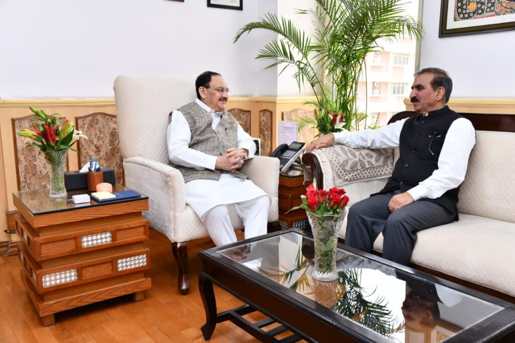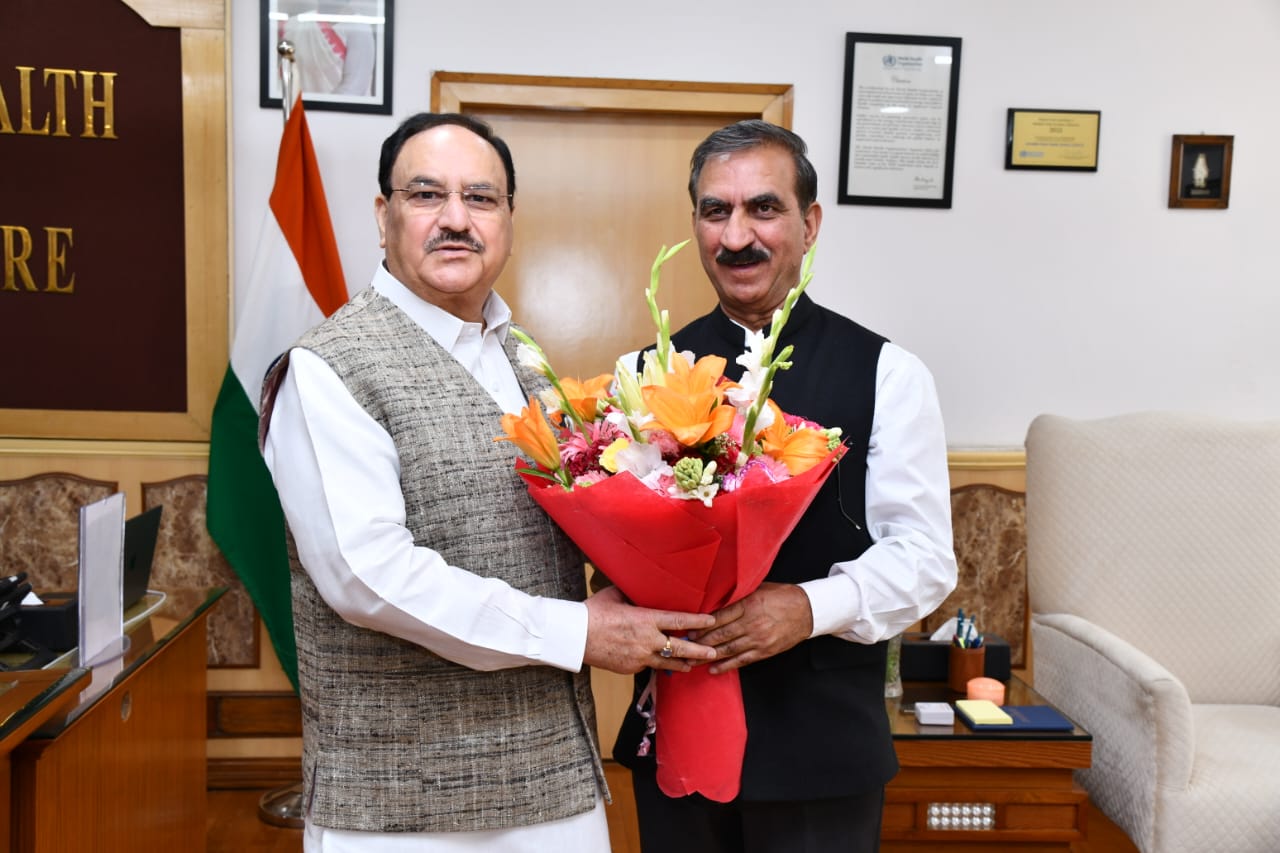 मुख्यमंत्री ठाकुर सुखविंद्र सिंह सुक्खू ने नई दिल्ली में केंद्रीय स्वास्थ्य एवं परिवार कल्याण मंत्री जगत प्रकाश नड्डा से भेंट की।उन्होंने हिमाचल प्रदेश में स्वास्थ्य क्षेत्र को सुदृढ़ बनाने के लिए आवश्यक सहायता के बारे में अवगत करवाया।बैठक के दौरान आयुष्मान भारत,राष्ट्रीय स्वास्थ्य मिशन के क्रियान्वयन और प्रगति मुख्यमंत्री ने केंद्रीय स्वास्थ्य मंत्री से की भेंट।।मुख्यमंत्री ने कैंसर केयर सेंटर के लिए केंद्र से सहयोग तथा राज्य में मरीजों को बेहतर उपचार उपलब्ध करवाने के लिए अस्पतालों में नवीनतम चिकित्सा तकनीक और आधुनिक उपकरणों के लिए आग्रह किया।