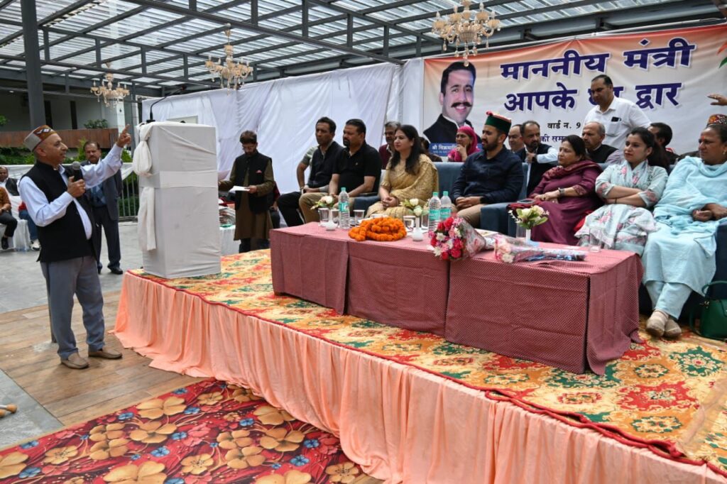 मंत्री आपके द्वार कार्यक्रम का आयोजन रविवार को कच्ची घाटी वार्ड में किया गया।इस कार्यक्रम में लोक निर्माण एवं शहरी विकास मंत्री ने बतौर मुख्यातिथि शिरकत की,कार्यक्रम को संबोधित करते हुए मंत्री ने कहा कि लोगों की शिकायतों का निपटारा प्राथमिकता के आधार पर किया जाएगा।उन्होंने कहा कि दीपक प्रोजैक्ट से तुलसी राम हाउस तक सड़क निर्माण के लिए 20 लाख रूपये का प्रावधान किया जाएगा।इसके साथ ही वार्ड में एक सामुदायिक भवन का निर्माण भी करवाया जाएगा जिसके लिए उन्होंने 40 लाख रुपए के बजट का प्रावधान करने की घोषणा की।