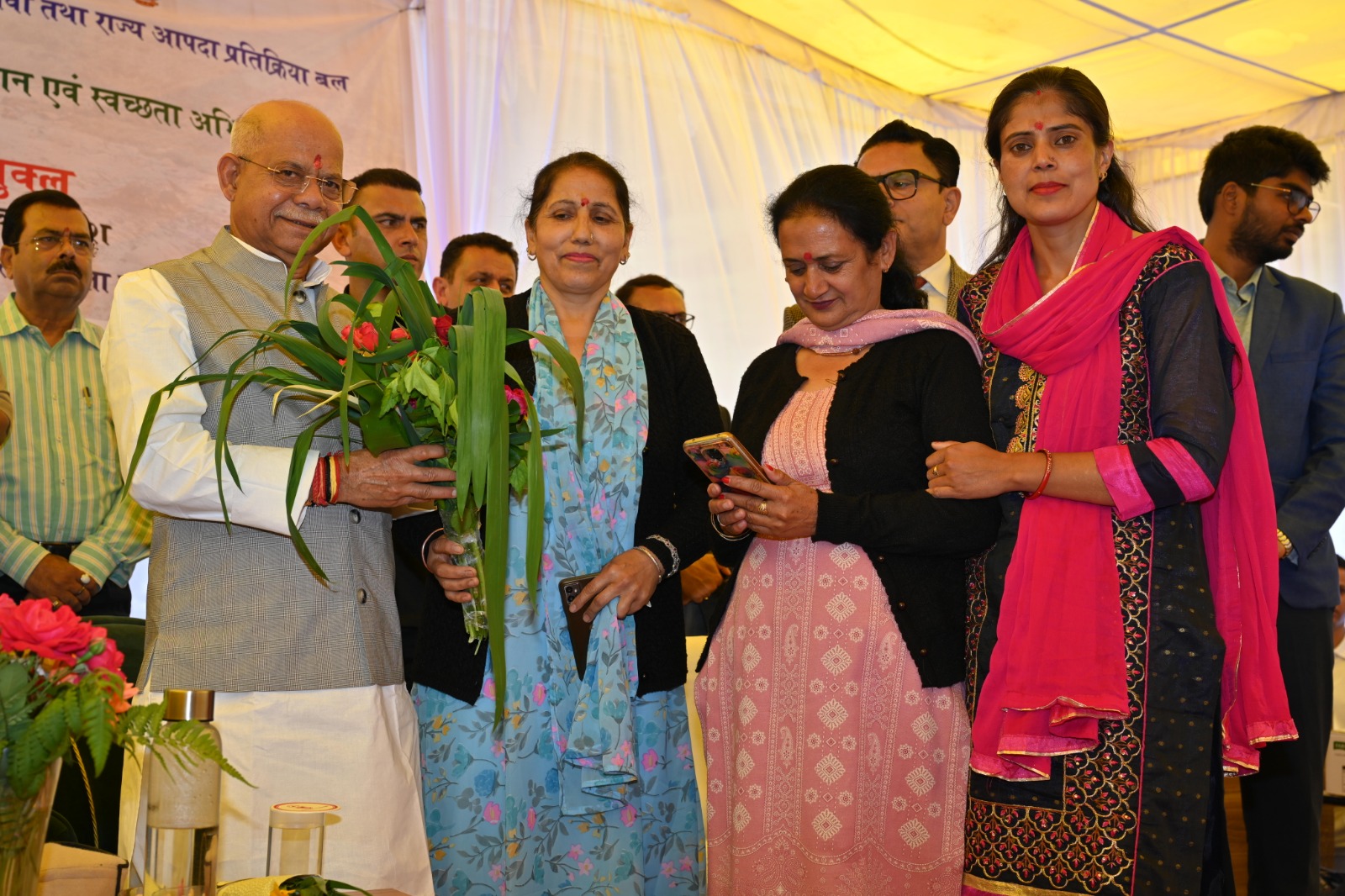 उन्होंने कहा कि किसी प्रकार की आपदा न आए,इसके लिए पर्यावरण संरक्षण जरूरी है और इस कार्य के लिए महिलाएं ‘‘मॉनीटर’’ के तौर पर कार्य करेंगी और यह भी सुनिश्चित बनाएंगी कि यह जल स्रोत गंदे न हों।गृह रक्षा विभाग के कमाडेंट राज पाल नेपटा ने धन्यवाद प्रस्ताप प्रस्तुत किया।राज्यपाल के सचिव सी.पी. वर्मा,विभिन्न पंचायतों के प्रधान,महिला मण्डलों की सदस्य,गृह रक्षा विभाग के कमाडेंट कुलदीप कपिल,पुलिस अधीक्षक,एस.डी.आर.एफ,अर्जित सेन,गीरी गंगा इको टूरिज़म के प्रधान लोकपाल शरखोली तथा अन्य गणमान्य व्यक्ति भी इस अवसर पर उपस्थित थे।