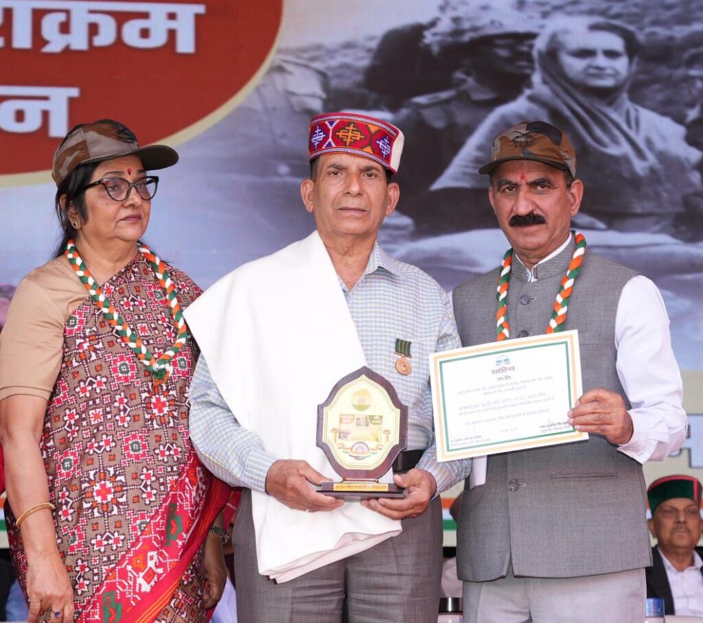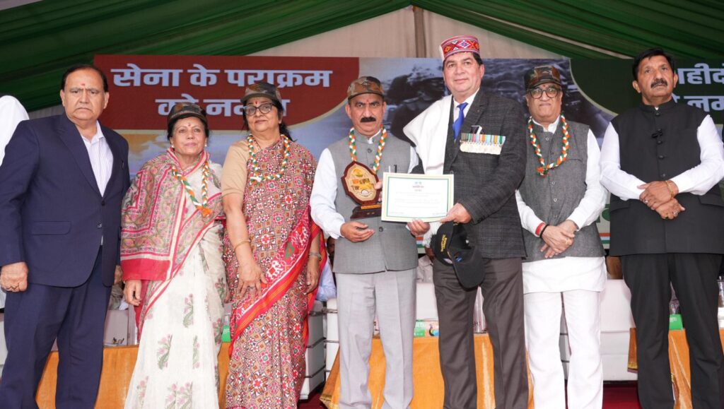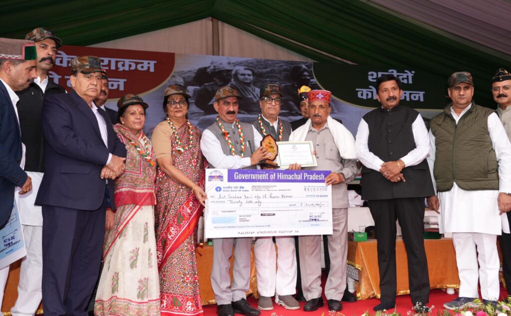 वर्ष 1962,1965,1971,कारगिल तथा ऑपरेशन सिंदूर में अदम्य साहस,वीरता तथा बलिदान प्रदर्शित करने के लिए वीरता सम्मान से अलंकृत वीर सैनिकों तथा शहीदों के परिजनों के सम्मान में ‘जय हिंद सभा’कार्यक्रम का आयोजन किया गया।इस कार्यक्रम में मुख्यमंत्री ठाकुर सुखविंद्र सिंह सुक्खू ने ऑपरेशन सिंदूर में सर्वोच्च बलिदान देने वाले शहीद सूबेदार मेजर पवन के पिता गरज सिंह तथा पुत्र अभिषेक को 30 लाख रुपये की आर्थिक सहायता के चैक प्रदान किए।उन्होंने कीर्ति चक्र विजेता शहीद नायक दिलबर ख़ान की धर्मपत्नी जमीला को 15 लाख रुपये तथा शहीद हवलदार रोहित कुमार की पत्नी भारत लक्ष्मी को 10 लाख रुपये के चैक प्रदान किए।