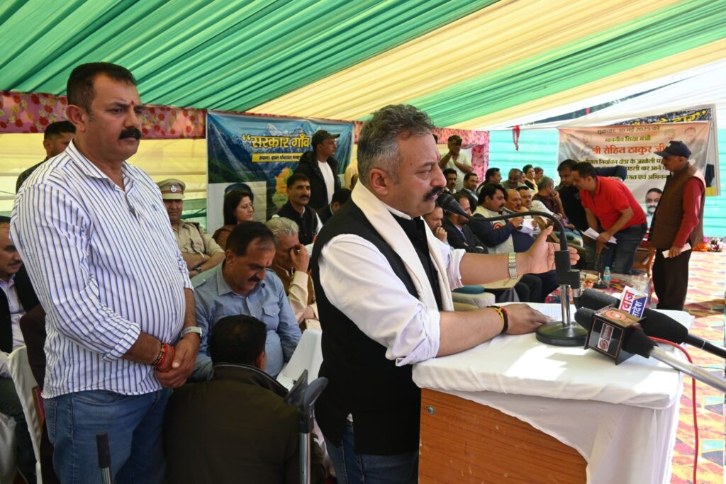 शिक्षा मंत्री रोहित ठाकुर ने कहा कि लोगों की समस्याओं का निराकरण प्रदेश सरकार की प्राथमिकता है और इसी सोच के तहत सरकार गांव के द्वार कार्यक्रम आरंभ किया गया है।शिक्षा मंत्री चौपाल उपमंडल की ग्राम पंचायत नन्हार में आयोजित सरकार गाँव के द्वार कार्यक्रम में उपस्थित लोगों को संबोधित कर रहे थे।उन्होंने कहा कि सरकार गाँव के द्वार कार्यक्रम से चौपाल और विशेषकर नन्हार की जनता अवश्य रूप से लाभान्वित होगी।उन्होंने कहा कि चौपाल विधानसभा क्षेत्र के समग्र विकास के लिए जो भी मुमकिन होगा वह किया जाएगा।उन्होंने कहा कि मानव संसाधन किसी भी क्षेत्र की पूंजी होती है इसलिए शिक्षा क्षेत्र को सुदृढ़ किया जा रहा है ताकि बच्चों को बेहतर और गुणवत्तापूर्ण शिक्षा उपलब्ध हो सके।इसी सोच के साथ कार्य करते हुए सरकार हिमाचल प्रदेश को आत्मनिर्भर बनाने की दिशा में कार्य कर रही है।
