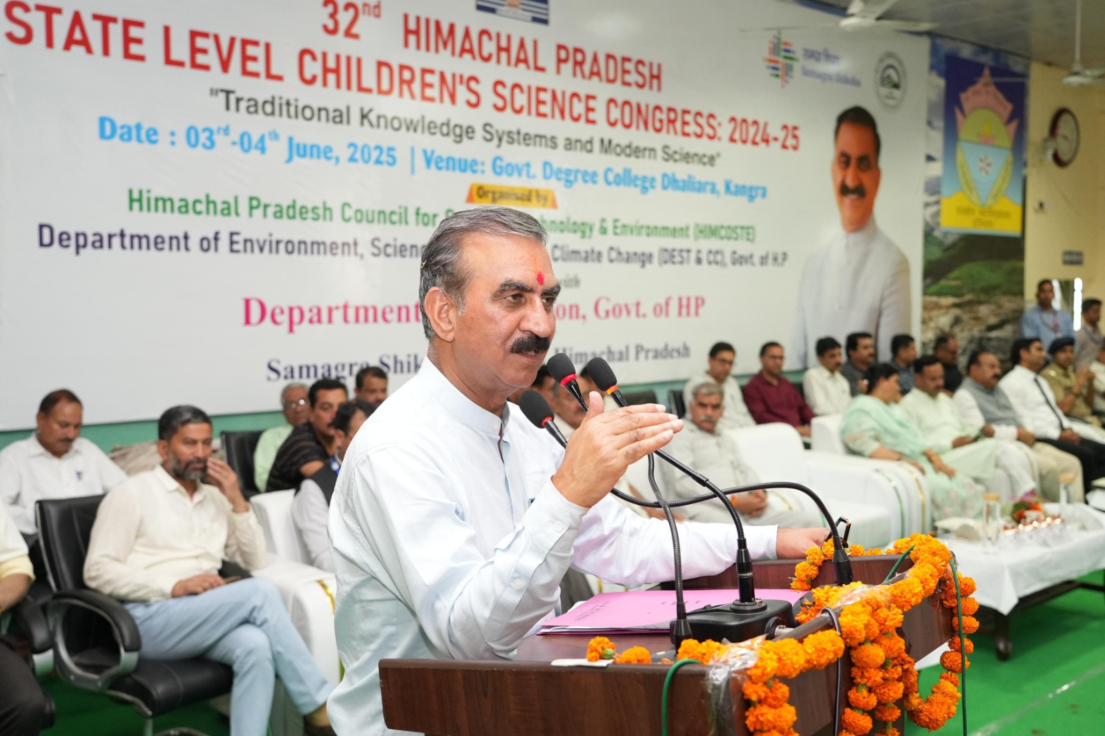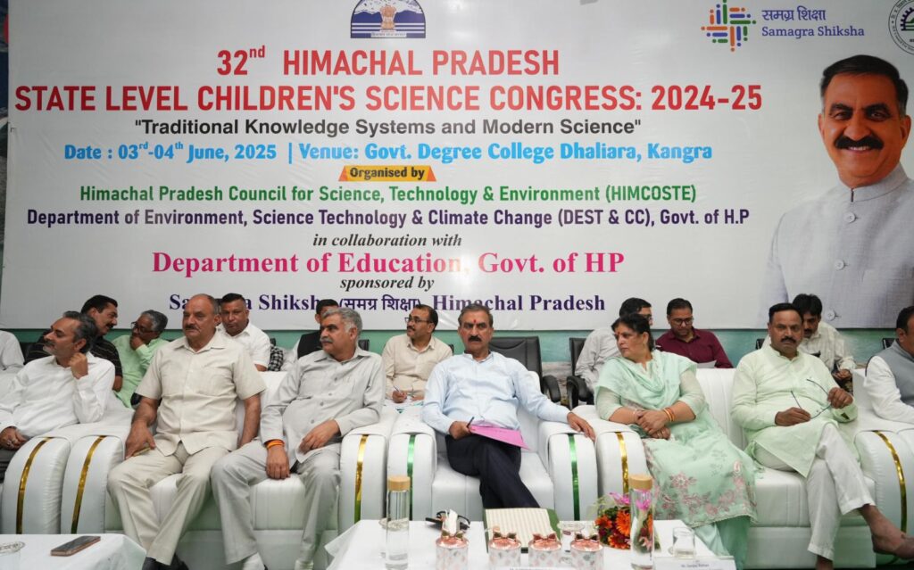 मुख्यमंत्री ठाकुर सुखविंद्र सिंह सुक्खू ने जिला कांगड़ा के राजकीय महाविद्यालय ढलियारा में आयोजित दो दिवसीय 32वीं हिमाचल प्रदेश राज्य स्तरीय चिल्ड्रन साइंस कांग्रेस के समापन कार्यक्रम के दौरान साइंस क्विज,मैथेमेटिकल ओलंपियाड,इनोवेटिव साइंस मॉडल,साइंस स्किल,निबंध लेखन तथा स्लोगन राइटिंग प्रतियोगिताओं के विजेताओं को सम्मानित किया तथा उनके उज्ज्वल भविष्य की कामना की।इस कार्यक्रम में 12 जिलों से आए लगभग 600 बाल वैज्ञानिकों एवं शिक्षकों ने भाग लिया।