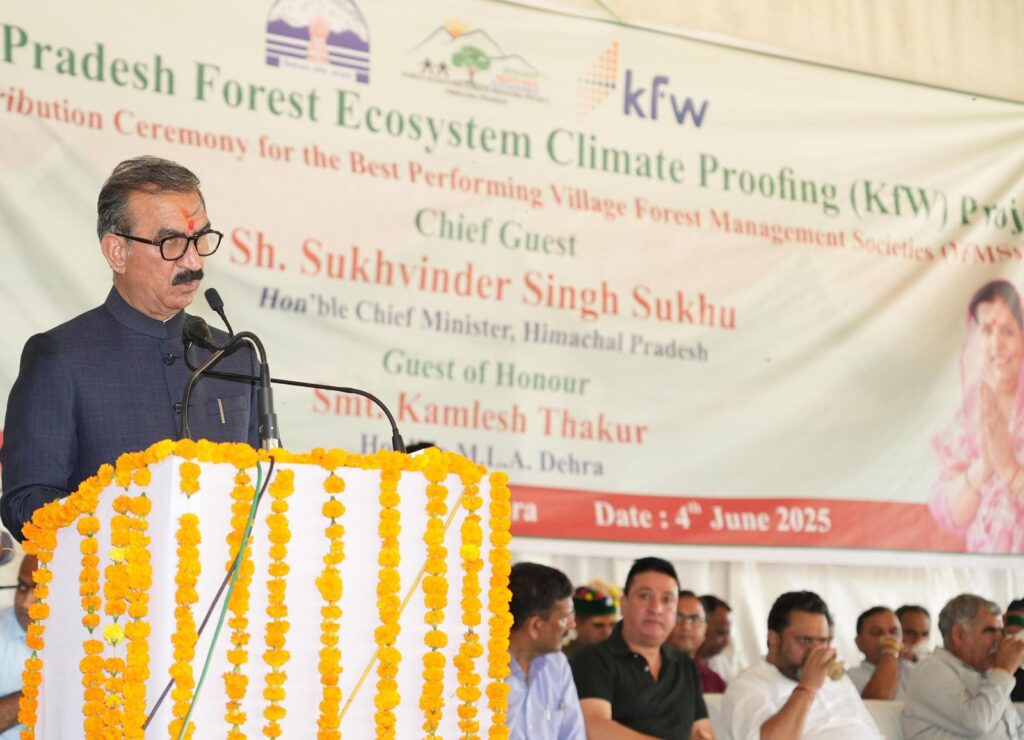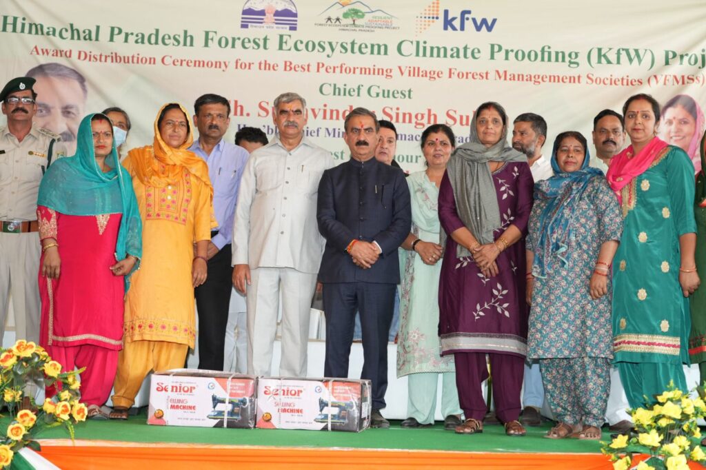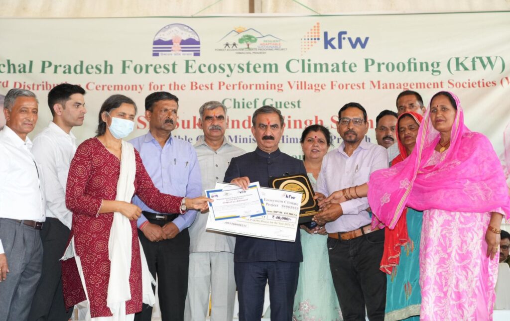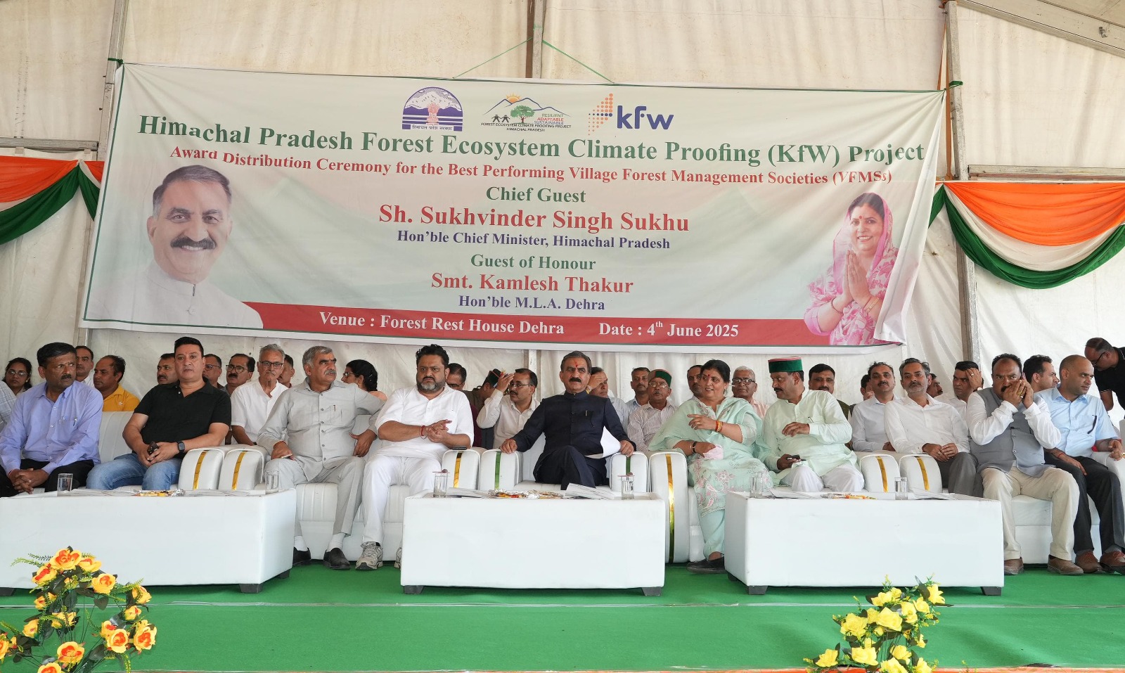 मुख्यमंत्री ठाकुर सुखविंद्र सिंह सुक्खू ने कांगड़ा जिला के देहरा में केएफडब्ल्यू परियोजना के अंतर्गत बेहतर कार्य करने वाली जिला कांगड़ा व चंबा की ग्राम वन प्रबंधन समितियों (विलेज फोरेस्ट मैनेजमेंट सोसायटी) को सम्मानित किया।उन्होंने राज्य स्तर पर वर्ष 2021-22 के लिए प्रथम पुरस्कार देहरा वन मंडल की ग्राम वन प्रबन्धन समिति लगडू को एक लाख रुपये,द्वितीय पुरस्कार डलहौजी वन मंडल की ग्राम वन प्रबन्धन समिति छम्बर को 60 हजार रुपये तथा तृतीय पुरस्कार देहरा वन मंडल की ग्राम वन प्रबन्धन समिति भटेड़़ को 40 हजार रुपये प्रदान किये।वर्ष 2022-23 के लिए राज्य स्तर का एक लाख रुपये का प्रथम पुरस्कार देहरा वन मंडल की ग्राम वन प्रबन्धन समिति भटेड़़,60 हजार रुपये का दूसरा पुरस्कार देहरा वन मंडल की ग्राम वन प्रबन्धन समिति जैनी मसरूर-2 तथा तीसरा पुरस्कार देहरा वन मंडल की ग्राम वन प्रबन्धन समिति लगडू को 40 हजार रुपये प्रदान किया।वर्ष 2023-24 के लिए राज्य स्तर का प्रथम पुरस्कार एक लाख रुपये देहरा वन मंडल की ग्राम वन प्रबन्धन समिति जैनी मसरूर-2,द्वितीय पुरस्कार 60 हजार रुपये देहरा वन मंडल की ग्राम वन प्रबन्धन समिति भटेड़़ तथा तृतीय पुरस्कार 40 हजार रुपये देहरा वन मंडल की ग्राम वन प्रबन्धन समिति लगड़ू को प्रदान िकया।