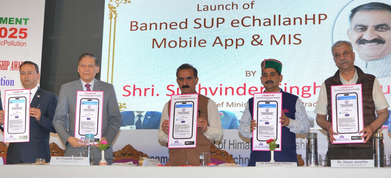 मुख्यमंत्री ठाकुर सुखविंद्र सिंह सुक्खू ने विश्व पर्यावरण दिवस के अवसर पर पीटरहॉफ,शिमला में आयोजित राज्य स्तरीय समारोह की अध्यक्षता की।इसका आयोजन पर्यावरण,विज्ञान प्रौद्योगिकी एवं जलवायु परिवर्तन विभाग तथा हिमाचल प्रदेश विज्ञान,प्रौद्योगिकी एवं पर्यावरण परिषद ने संयुक्त रूप से किया।इस अवसर पर मुख्यमंत्री ने प्रदेश के स्कूलों के विद्यार्थियों को पानी पीने की छह लाख स्टेनलैस स्टील की बोतलें प्रदान करने की घोषणा की।उन्होंने कहा कि प्रदेश सरकार पर्यावरण संरक्षण को सर्वाेच्च प्राथमिकता प्रदान कर रही है।प्लास्टिक प्रदूषण को नियंत्रित करने के लिए ठोस उपाय किए जा रहे हैं।प्लास्टिक के उपयोग से संबंधित नियमों को सख्ती से लागू किया गया है तथा जन जागरुकता के लिए निरंतर प्रयास किए जा रहे हैं।उन्होंने कहा कि प्रदेश सरकार ने प्लास्टिक के खिलाफ निर्णायक लड़ाई शुरू की है।उन्होंने कहा कि प्रदेश सरकार ने 31 मार्च,2026 तक प्रदेश को ग्रीन स्टेट बनाने का लक्ष्य निर्धारित किया है।इसके दृष्टिगत अनेक नवोन्मेषी पहल की जा रही हैं।प्रदेश में हरित आवरण को बढाने के लिए नवीन योजनाएं कार्यान्वित की जा रही हैं।नई सौर ऊर्जा परियोजनाएं,ग्रीन कॉरिडोर,ई-वाहन तथा हरित ऊर्जा को प्रोत्साहन सहित अनेक कदम उठाए जा रहे हैं।ठाकुर सुखविंद्र सिंह सुक्खू ने कहा कि ग्रीन कवर को बचाने के लिए प्रदेश सरकार ने केन्द्र सरकार से ग्रीन बोनस की मांग की है ताकि राज्य के प्रयासों को संबल मिल सके।मुख्यमंत्री ने इस अवसर पर सिंगल यूज़ प्लास्टिक चालान मोबाइल ऐप का शुभारम्भ भी किया।इस ऐप के माध्यम से प्लास्टिक के अवैध उपयोग पर अधिकारियों को पेपरलेस और त्वरित चलान की सुविधा उपलब्ध होगी।श्री सुक्खू ने पर्यावरण विभाग की लघु पुस्तकों का विमोचन भी किया।उन्होंने शक्ति स्वयं सहायता समूह,एकता स्वयं सहायता समूह और कुशाला संकुल स्तरीय संगठन को पत्तल और डूना बनाने की मशीनें भेंट की।उन्होंने ईको क्लब आर.के.एम.वी. को शरेडर मशीन भी भेंट की।मुख्यमंत्री ने इस अवसर पर विभिन्न स्पर्धाओं के विजेताओं को पुरस्कार भी वितरत किए।इससे पहले,मुख्यमंत्री ने विभाग द्वारा लगाई गई प्रदर्शनी का अवलोकन किया।मुख्य सचिव प्रबोध सक्सेना ने प्रदेश में पर्यावरण संरक्षण की दिशा में उठाये गए महत्वपूर्ण प्रयासों की विस्तृत जानकारी दी।उन्होंने कहा कि हिमाचल प्रदेश डिपोजिट रिफंड स्कीम,प्लास्टिक उत्पन्न करने वालों और प्रदूषण फैलाने वालों पर नियंत्रण के लिए कारगर साबित होगी।उन्होंने जलवायु अनुकूलन कार्य योजना,जलवायु साक्षरता और हरित आवरण सहित विभिन्न विषयों पर प्रकाश डाला।निदेशक पर्यावरण,विज्ञान प्रौद्योगिकी एवं जलवायु परिवर्तन 