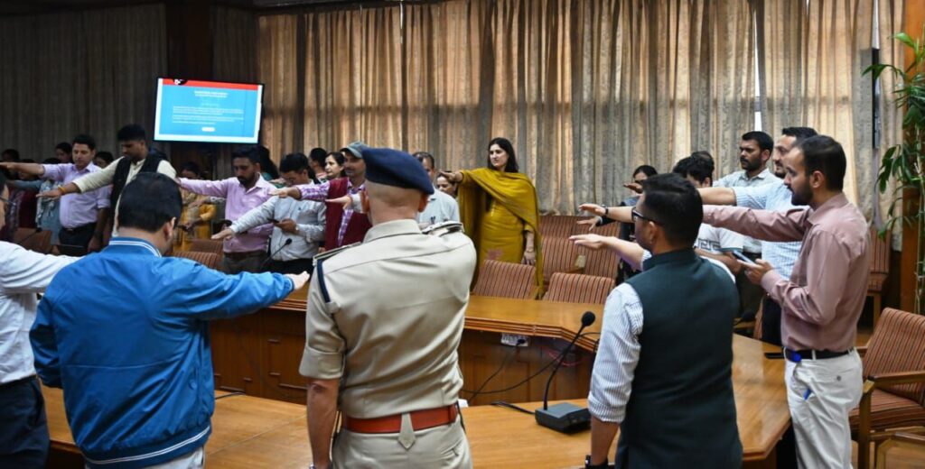 अतिरिक्त उपायुक्त अभिषेक वर्मा ने यहां बचत भवन सभागार में उपायुक्त कार्यालय के कर्मचारियों को नशा मुक्त भारत अभियान के अंतर्गत ऑनलाइन शपथ दिलाई।अतिरिक्त उपायुक्त ने कहा कि नशा आज लगभग हर घर में पहुंच चुका है,जिसे खत्म करने के लिए सभी को आगे आना पड़ेगा,उन्होंने सभी से नशे के खिलाफ एक मुहिम के साथ कार्य करने का आग्रह किया तथा लोगों को भी नशे के खिलाफ जागरूक करने को कहा।