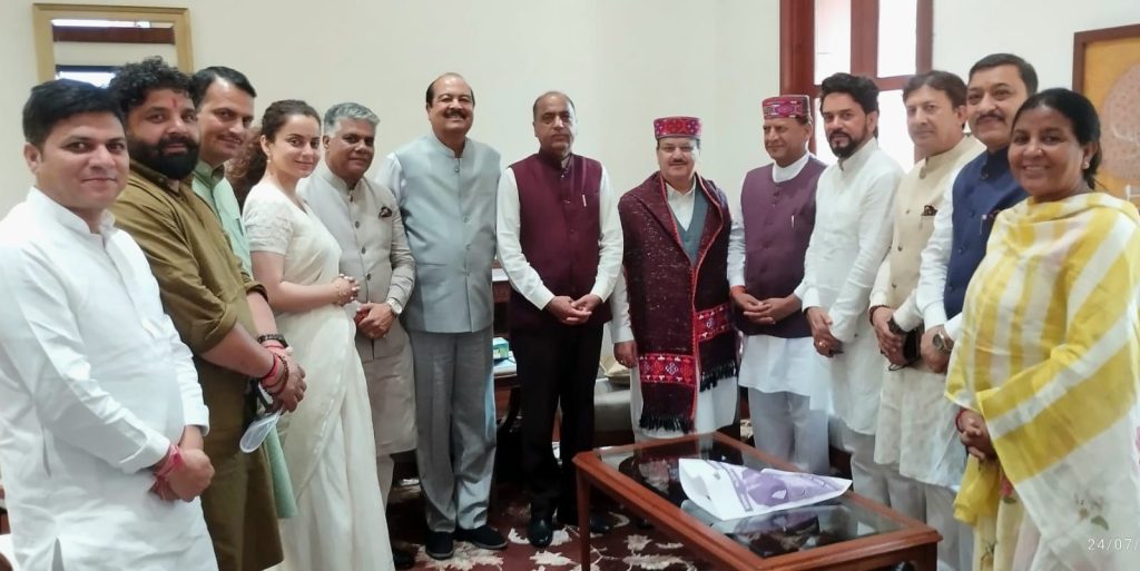 मंडी में आई प्राकृतिक आपदा के विषय को लेकर हिमाचल प्रदेश भारतीय जनता पार्टी का एक प्रतिनिधिमंडल केंद्र सरकार के मंत्रीगणों से मिला।प्रतिनिधिमंडल में नेता प्रतिपक्ष एवं पूर्व मुख्यमंत्री जयराम ठाकुर,प्रदेश अध्यक्ष भाजपा डॉ.राजीव बिंदल,पूर्व केंद्रीय मंत्री एवं सांसद अनुराग ठाकुर,सांसद एवं पूर्व प्रदेश अध्यक्ष सुरेश कश्यप,डॉ.राजीव भारद्वाज,सुश्री कंगना रणौत,राज्यसभा सांसद इंदू गोस्वामी,डॉ.सिकंदर कुमार,हर्ष महाजन,विधायक विनोद कुमार,हंसराज और दीपराज शामिल थे।