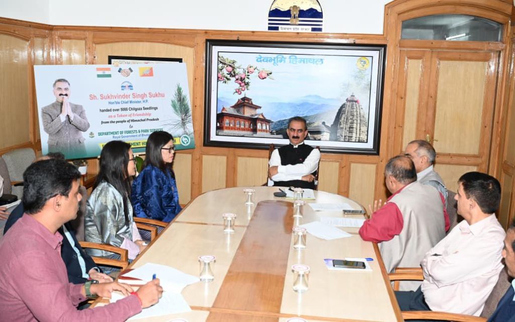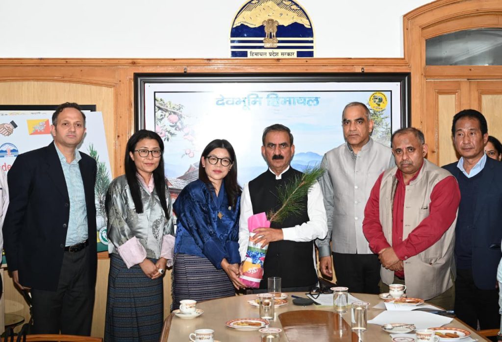 रॉयल भूटानी एम्बेसी के डिप्टी चीफ ऑफ मिशन ताशी पेलडन और मंत्री सलाहकार चिमी वांगमो के नेतृत्व में भूटान साम्राज्य के एक प्रतिनिधिमंडल ने यहां मुख्यमंत्री ठाकुर सुखविंद्र सिंह सुक्खू से भेंट की तथा परस्पर संबंधों पर चर्चा की।मुख्यमंत्री ने कहा कि भारत और भूटान के बीच संबंध हमेशा सौहार्दपूर्ण रहे हैं।उन्होंने बताया कि दोनों देशों के बीच 1949 में मैत्री समझौते पर हस्ताक्षर हुए थे,जिसे 2007 में नवीनीकृत किया गया।उन्होंने कहा कि इन संबंधों को और अधिक मजबूत करते हुए प्रदेश की जनता की ओर से मित्रता के प्रतीक के रूप में भूटान सरकार के वन एवं पार्क सेवा विभाग को आज 5000 से अधिक चिलगोजा पौधे दिए गए हैं।मुख्यमंत्री ने बताया कि आगामी अक्तूबर में,जाईका परियोजना के तहत स्वयं सहायता समूहों द्वारा एकत्र किए गए 50 किलोग्राम चिलगोजा के बीज भी भूटान को प्रदान किए जाएंगे।