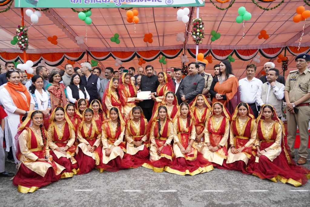 सांस्कृतिक प्रस्तुतियों वाले प्रतिभागियों को किया सम्मानित:कार्यक्रम के दौरान जवाहर लाल नेहरू राजकीय ललित कला महाविद्यालय लोहारब बनुटी की टीम ने देशभक्ति पर आधारित शास्त्रीय नृत्य,जयेश्वरी सांस्कृतिक दल जैस ठियोग ने महासुवी नाटी,सम्भोता तिब्बतन स्कूल ने तिब्बतन नृत्य, राजकीय महाविद्यालय धामी की टीम ने सोलन का गिद्धा और राजकीय कन्या महाविद्यालय की टीम ने किन्नौरी नाटी की प्रस्तुति दी जिनका लोगों ने खूब लुत्फ़ उठाया। उपमुख्यमंत्री ने सांस्कृतिक प्रस्तुतियां देने वाले सभी प्रतिभागियों को प्रोत्साहन राशि और सर्टिफिकेट देकर सम्मानित किया।