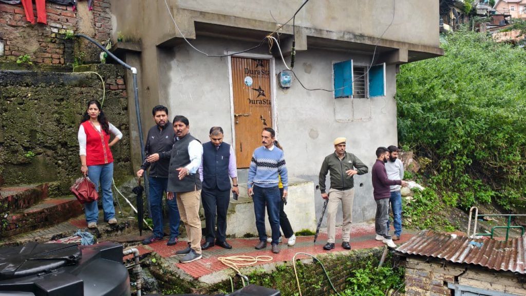 जिला प्रशासन की टीम ने शहर में भारी बारिश से प्रभावित घटनास्थलों का निरीक्षण किया।टीम ने रामचंद्रा चौक और कृष्णा नगर का निरीक्षण किया।कृष्णा नगर में भारी बारिश के कारण भूस्खलन के खतरे के चलते 5 परिवारों को सामुदायिक भवन में शिफ्ट करवा दिया गया,वहीं राम चंद्रा चौक पर भी भूस्खलन की घटना का निरीक्षण जिला प्रशासन की टीम ने लिया।प्रशासन की टीम में अतिरिक्तजिला दंडाधिकारी (कानून एवं व्यवस्था)पंकज शर्मा,एसडीएम शहरी ओशीन शर्मा और तहसीलदार अपूर्व मौजूद रहे।अतिरिक्त जिला दंडाधिकारी कानून एवं व्यवस्था पंकज शर्मा ने कहा कि शहर में इसके अलावा कई स्थानों पर मलबा गिरा व पेड़ों के गिरने से नुकसान हुआ है।बैनमोर वार्ड पर रामचंद्र चौक में एक बार फिर से काफी लैंडस्लाइड हुआ है।भूस्खलन से बड़े पेड़ सरकारी भवन की छत पर जा पहुंचे हालांकि घटना में किसी का जानी नुकसान नहीं है।आसपास के मकानों को खतरा पैदा हो गया था,इसको देखते हुए मकानों को खाली किया गया है।खतरनाक पेड़ों को काटा जा रहा है।इसके साथ ही रेस्क्यू कार्य तीव्र गति से चला है।भूस्खलन प्रभावित क्षेत्र में तिरपाल लगाया जाएगा।उन्होंने कहा कि कृष्णा नगर में भूस्खलन के कारण प्रभावित भवनों में रह रहे पांच परिवारों को कृष्णा नगर के सामुदायिक भवन में शिफ्ट करवा दिया है।इनके खाने पीने की व्यवस्था की गई है।