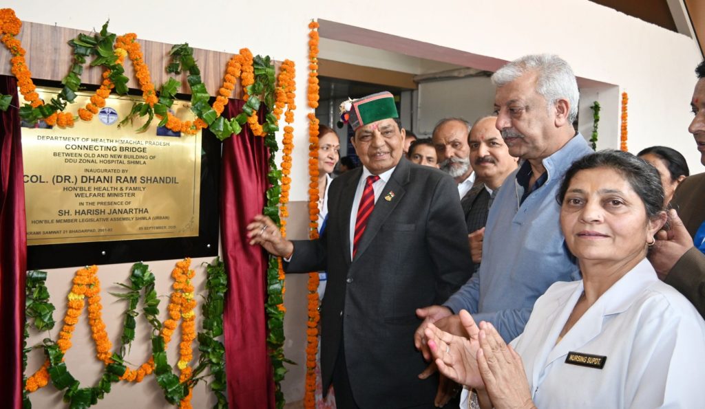 स्वास्थ्य एवं परिवार कल्याण,सामाजिक न्याय एवं अधिकारिता तथा सैनिक कल्याण मंत्री कर्नल (डॉ.)धनी राम शांडिल ने दीन दयाल उपाध्याय जोनल अस्पताल (रिपन अस्पताल)शिमला में विभिन्न परियोजनाओं का शुभारंभ किया।इस अवसर पर उन्होंने अस्पताल की पुरानी एवं नई इमारत को जोड़ने वाले संपर्क सेतु,मॉड्यूलर ऑपरेशन थियेटर और विशेष नवजात शिशु देखभाल इकाई का लोकार्पण किया।इन परियोजनाओं के आरंभ से मरीजों को बेहतर स्वास्थ्य सुविधाएं उपलब्ध होंगी और अस्पताल की सेवाएं और अधिक सुदृढ़ होंगी।
