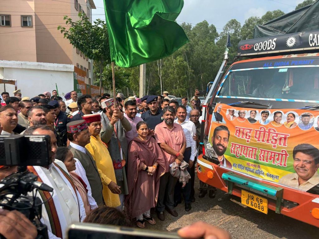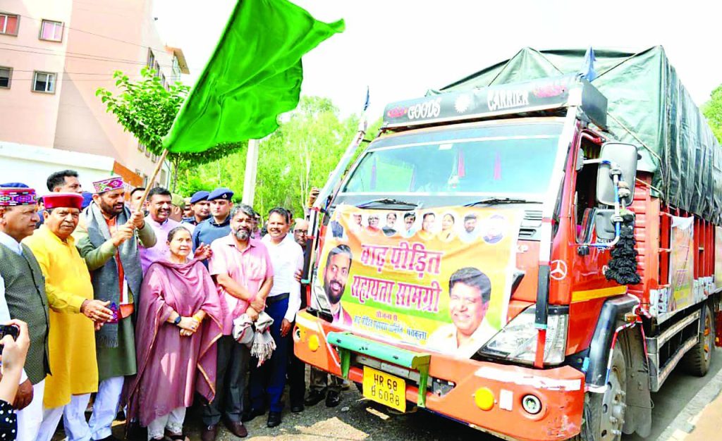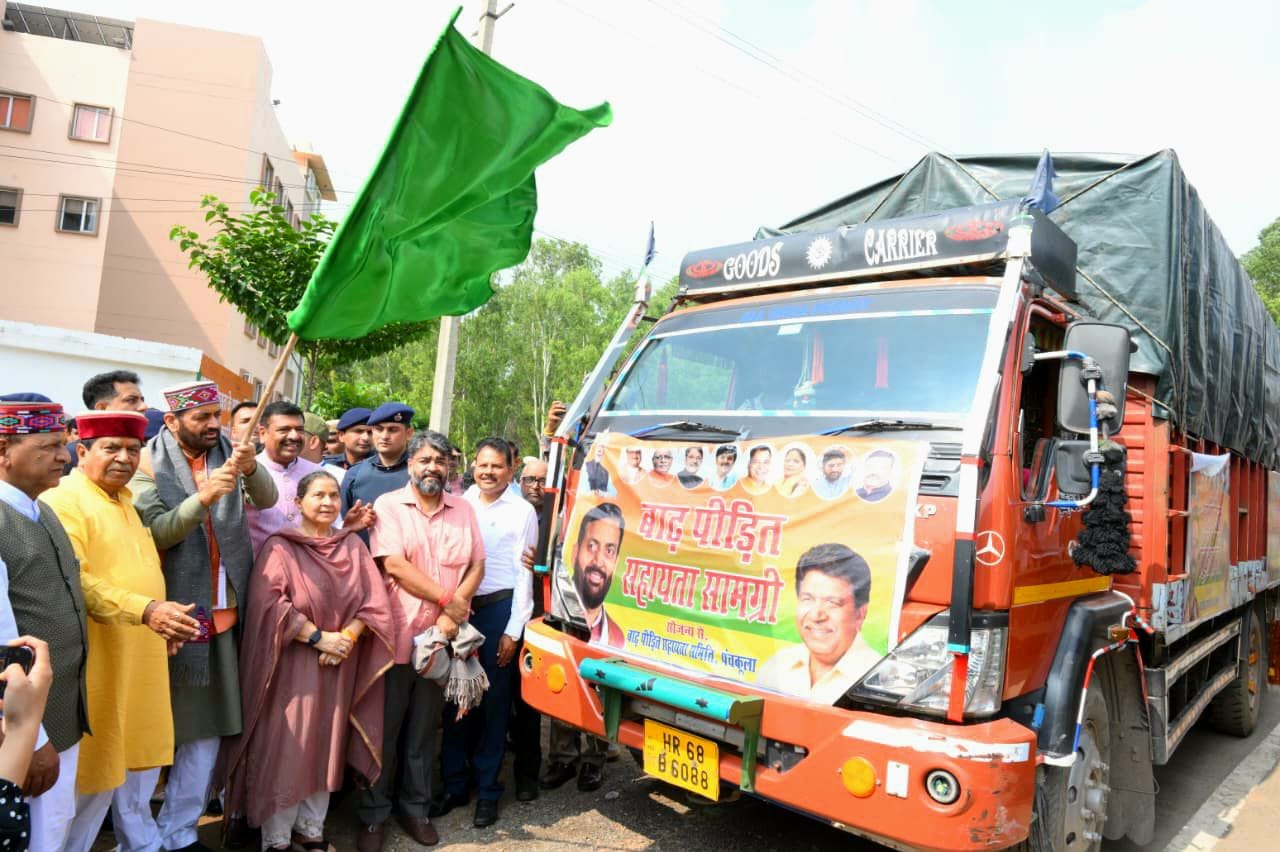 भाजपा प्रदेश अध्यक्ष डा.राजीव बिंदल ने कहा कि हरियाणा के मुख्यमंत्री नायब सिंह सैणी द्वारा हिमाचल प्रदेश के भाई-बहनों के लिए आपदा में राहत सामग्री देने का महान कार्य किया है।डा.बिंदल ने बताया कि पंचकूला,अंबाला व आसपास के क्षेत्र के दानी महापुरुषों ने यह सामग्री एकत्र करके मुख्यमंत्री द्वारा प्रेषित की।इस सामग्री में 186 क्विंटल चावल,153 क्विंटल आटा,20 क्विंटल नमक,65 क्विंटल चीनी,20 क्विंटल दाल,25 किलो हल्दी,750 किलो मसाले,2400 लीटर खाने का तेल,50 किलो चाय पत्ती,1000 तिरपाले,1021 कंबल,1500 गद्दे,2600 साबून,1200 पैकेट बिस्किट,650 सैनेटरी पैड,बर्तन,टूथपेस्ट,पानी,मैगी,ओट्स व अन्य खुदरा सामान इस प्रकार 10 ट्रक सामग्री पंचकूला भाजपा कार्यालय से हरी झंडी दिखाकर चंबा के लिए रवाना की गई।इस सामग्री को चंबा जिला के प्रभावित परिवारों में आवश्यकतानुसार वितरित किया जाएगा।