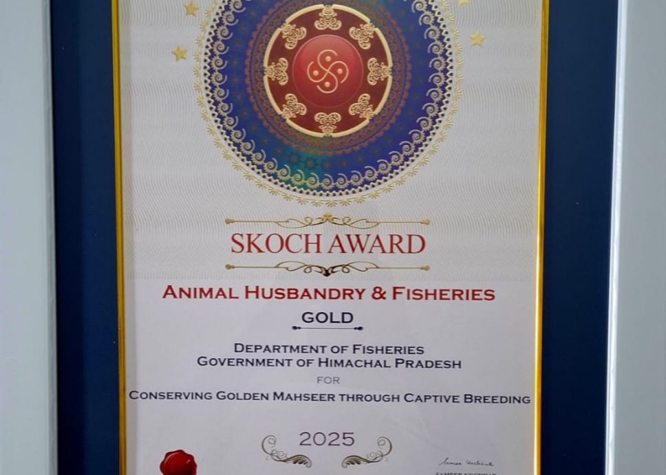 हिमाचल प्रदेश के मत्स्य पालन विभाग को सफल कैप्टिव प्रजनन योजना के माध्यम से गंभीर रूप से लुप्तप्राय गोल्डन माहशीर के संरक्षण की दिशा में अनुकरणीय और अग्रणी प्रयासों के लिए प्रतिष्ठित स्कॉच गोल्ड अवॉर्ड 2025 से सम्मानित किया गया है।यह प्रतिष्ठित पुरस्कार 20 सितंबर,2025 को नई दिल्ली के इंडिया हैबिटेट सेंटर में आयोजित एक समारोह में प्रदान किया गया।गोल्डन माहशीर एक ताजे पानी की मछली की प्रजाति है जो न केवल राज्य की जलीय जैव विविधता का प्रतीक है बल्कि हिमाचल प्रदेश,केंद्रीय शासित प्रदेश जम्मू-कश्मीर,उत्तराखंड और अरुणाचल प्रदेश की राज्य मछली भी है।मुख्यमंत्री ठाकुर सुखविंद्र सिंह सुक्खू ने इस उपलब्धि के लिए विभाग को बधाई दी है उन्होंने कहा कि स्कॉच गोल्ड अवॉर्ड जैव विविधता संरक्षण के लिए प्रदेश सरकार की अटूट प्रतिबद्धता और अभिनव दृष्टिकोण का एक प्रमाण है।स्कॉच समूह प्रभावशाली शासन परियोजनाओं को सम्मानित करने के लिए प्रसिद्ध है और उनके द्वारा यह राष्ट्रीय मान्यता एकीकृत संरक्षण रणनीति की प्रभावशीलता को और प्रमाणित करती है।यह पुरस्कार गोेल्डन माहशीर के संरक्षण के लिए प्रदेश सरकार के महत्त्वपूर्ण प्रयासों को रेखांकित करता है।यह पुरस्कार विभाग की ओर से राज्य मत्स्य पालन के निदेशक एवं प्रारक्षी हिमाचल प्रदेश विवेक चंदेल और सहायक निदेशक,मत्स्य,डॉ.सोम नाथ ने प्राप्त किया।मत्स्य पालन क्षेत्र प्रदेश के लगभग 20,000 वयक्तियों को बतौर मछुआरे,फिश फार्मर,मछली विक्रेता और मछली उद्यमी रोज़गार प्रदान करता है,पिछले कुछ दशकों में जलविद्युत परियोजनाओं से आवास के क्षरण,अत्याधिक मछली पकड़ने और मानवीय ग्तिविधियों से होने वाले प्रदूषण सहित कई खतरों के कारण हिमाचल प्रदेश में गेल्डन माहशीर की आबादी में चिंताजनक गिरावट आई है।इसके दृष्टिगत मत्स्य पालन विभाग ने एक महत्त्वपूर्ण और वैज्ञानिक रूप से समर्थित कैप्टिव प्रजनन कार्यक्रम शुरू किया,2016 में स्थापित,मछ्याल माहशीर फार्म में वार्षिक अंगुलिकाओं का उत्पादन कभी भी 5,000 से अधिक नहीं हुआ जिस कारण यह फार्म शुरुआत से ही संघर्ष कर रहा था।मुख्यमंत्री के नेतृत्व में वर्ष 2023 में इस समस्या को हल करने के लिए एक विशेष अभियान चलाया गया।प्रदेश सरकार ने अंगुलिकाओं के जीवित रहने की कम दर के कारणों का पता लगने के लिए एक समर्पित नोडल अधिकारी नियुक्त किया। देश के एकमात्र ठंडे पानी के मत्स्य अनुसंधान संस्थान,भारतीय कृषि अनुसंधान परिषद-केंद्रीय अंतर्देशीय मत्स्य अनुसंधान संस्थान (आईसीएआर-सीआईसीएफआर), भीमताल,उत्तराखंड के साथ एक सहयोग स्थापित किया ग्या और विभाग के निदेशक ने स्वयं नोडल अधिकारी के साथ कमियों का पता लगाने के लिए आईसीएआर-सीआईसीएफआर भ
