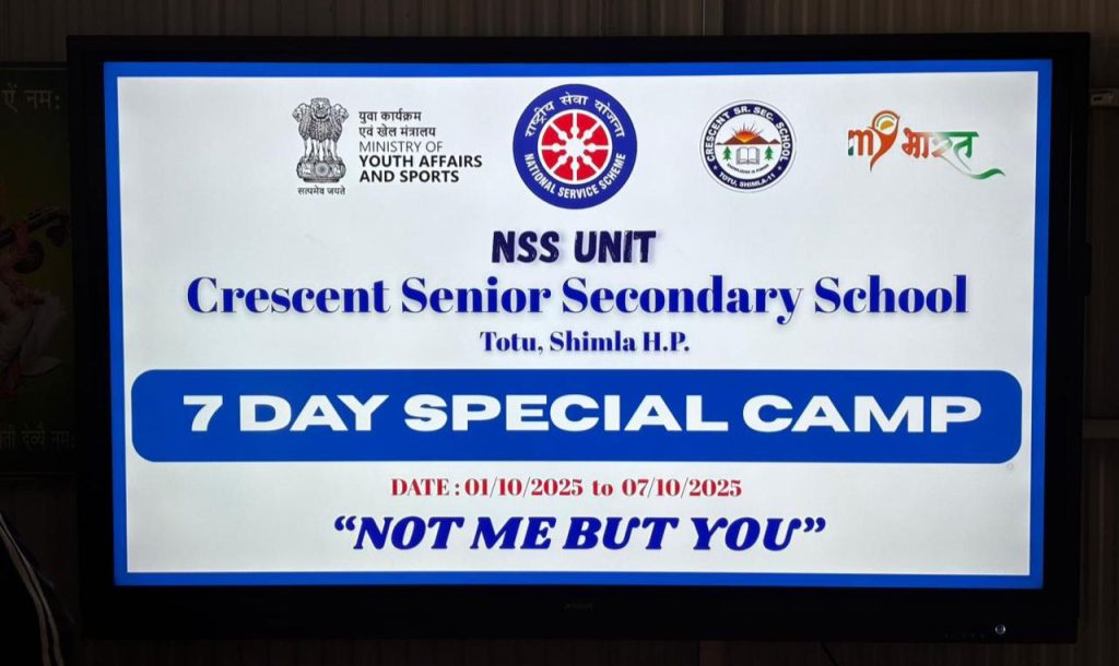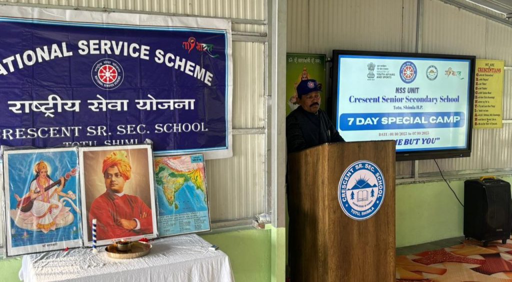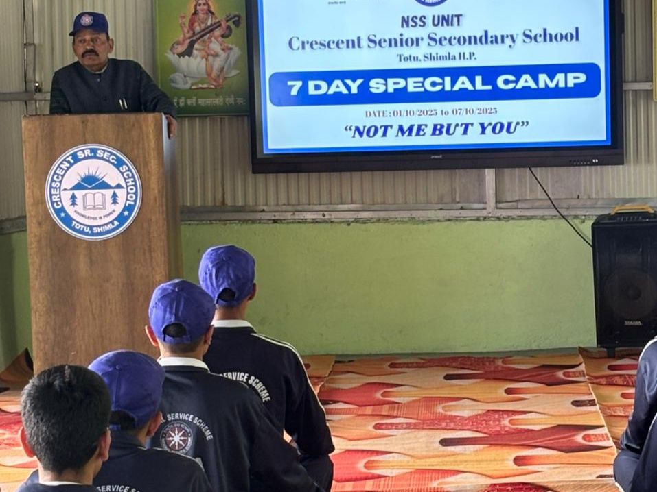 क्रिसेंट सीनियर सेकेंडरी स्कूल टुटू में राष्ट्रीय सेवा योजना विशेष शिविर का आगाज़ उत्साहपूर्वक हुआ।शिविर का शुभारंभ पूर्व में एन.एस.एस के प्रदेश संयोजक व रिटायर्ड प्रिंसिपल स्कूल शिक्षा विभाग दिलीप ठाकुर ने किया।कार्यक्रम का शुभारंभ स्कूल के प्रधानाचार्य डॉ सुभाष चंद के स्वागत भाषण से हुआ।