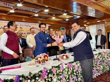 हिमाचल प्रदेश ओलिंपिक संघ की वार्षिक आम बैठक रविवार को शिमला में आयोजित की गई।जिसमें भाजपा सांसद अनुराग ठाकुर को सर्वसम्मति से संघ का अध्यक्ष चुना गया।बैठक रविवार को शिमला के होटल में संपन्न हुई।इस बैठक में संघ के अगले कार्यकाल के लिए पदाधिकारियों की एक नई टीम का चुनाव किया गया।पूर्व केंद्रीय खेल मंत्री अनुराग ठाकुर को सर्वसम्मति से अध्यक्ष चुना गया,कबड्डी संघ के प्रदेश महासचिव कुलदीप राणा ने पूर्व केंद्रीय मंत्री को प्रदेश ओलम्पिक संघ के अध्यक्ष चुने जाने पर उन्हें बधाई एवं शुभकामनाएं दी हैं।उन्होंने कहा कि उनके नेतृत्व में हिमाचल प्रदेश खेल जगत में आगे बढ़ेगा।