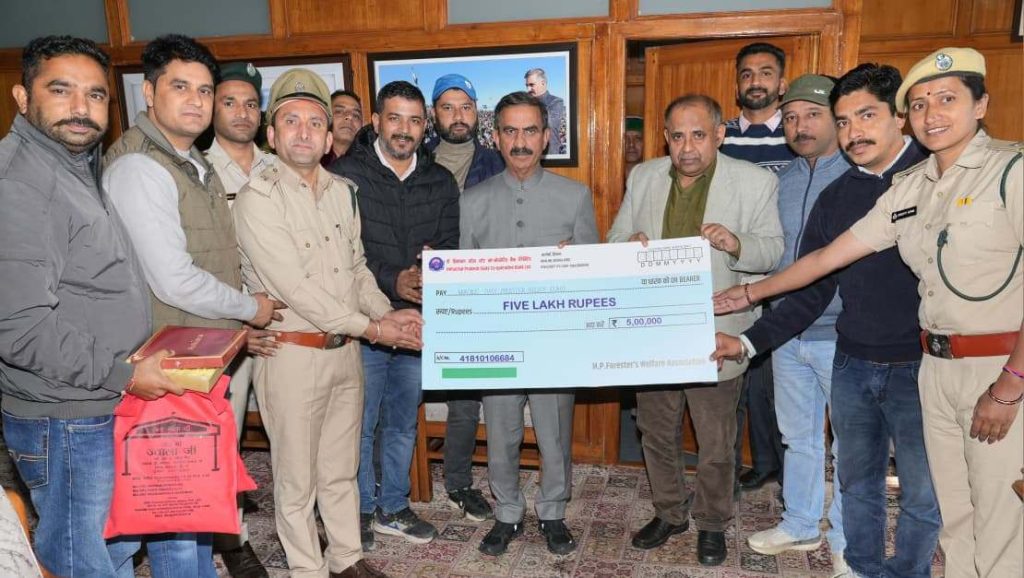 हिमाचल प्रदेश वन अराजपत्रित कर्मचारी महासंघ के एक प्रतिनिधिमंडल ने वन विभाग के वन बल प्रमुख डॉ.संजय सूद की अध्यक्षता में मुख्यमंत्री ठाकुर सुखविंद्र सिंह सुक्खू से सचिवालय में भेंट की।प्रतिनिधिमंडल ने हाल ही में वन विभाग में 301 वन रक्षकों को उप-वन राजिक के पद पर पदोन्नति देने के लिए मुख्यमंत्री का आभार व्यक्त किया।इस अवसर पर महासंघ ने हिमाचल में आई प्राकृतिक आपदा के दृष्टिगत पांच लाख रुपए का चेक मुख्यमंत्री राहत कोष में दान किया।महासंघ के राज्य महासचिव दिनेश शर्मा,प्रतिनिधि और एन.जी.ओ.अध्यक्ष प्रदीप ठाकुर भी इस अवसर पर उपस्थित थे।