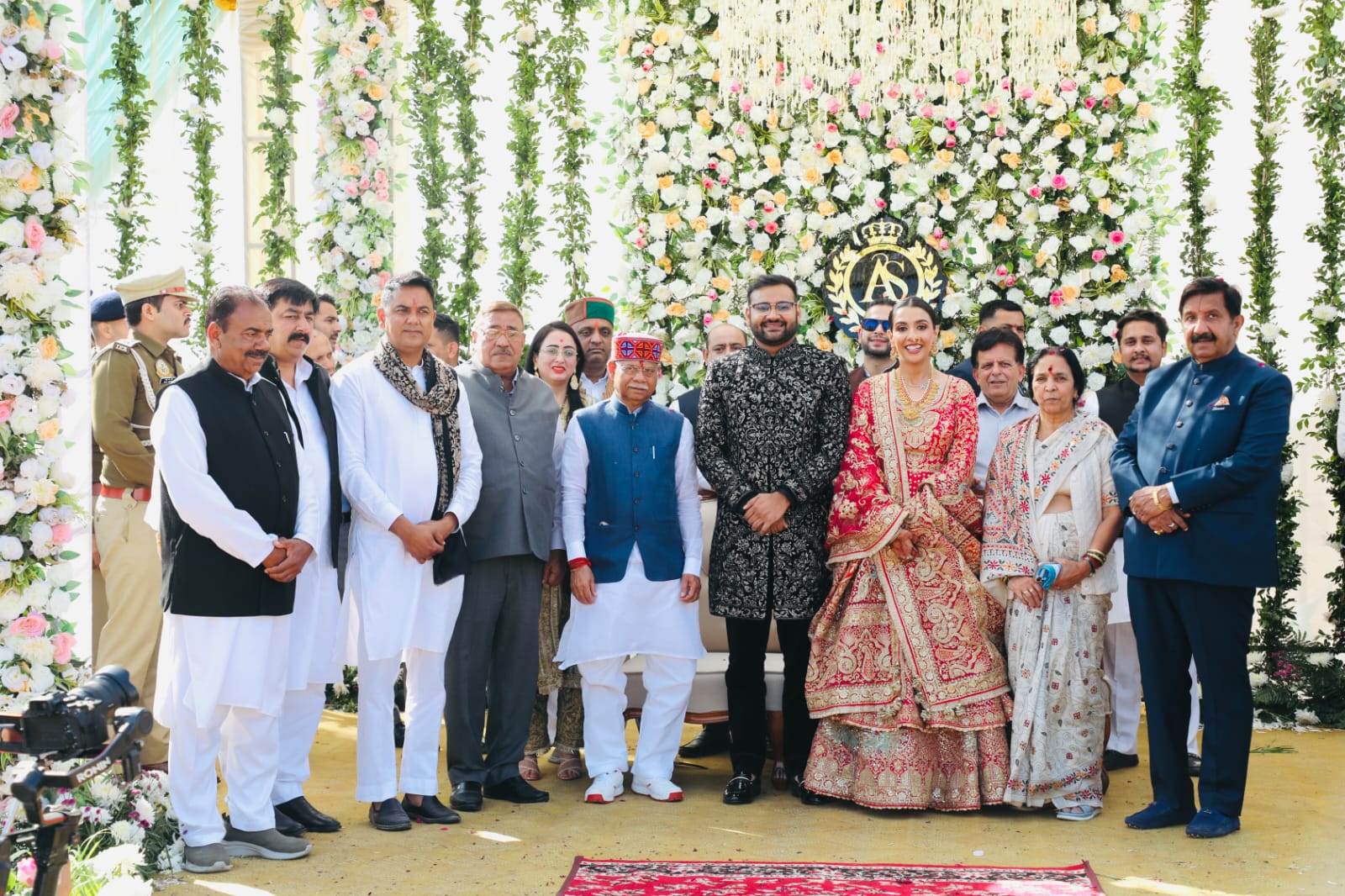 इस अवसर पर विधानसभा उपाध्यक्ष विनय कुमार,पूर्व केंद्रीय मंत्री आनंद शर्मा,तकनीकी शिक्षा,व्यावसायिक एवं औद्योगिक प्रशिक्षण मंत्री राजेश धर्माणी,आयुष मंत्री यादविंदर गोमा,विधायक सतपाल सत्ती,विधायक आशीष बुटेल,विधायक नीरज नैय्यर,विधायक विवेक शर्मा,विधायक राकेश कालिया,विधायक सुदर्शन बबलू,विधायक भवानी सिंह पठनीया,विधायक हरदीप सिंह बावा,हिमफैड चेयरमैन महेश्वर चौहान,पूर्व विधायक सतपाल रायजादा सहित वरिष्ठ जनप्रतिनिधियों,गणमान्य नागरिकों तथा प्रदेश भर एवं हरोली क्षेत्र से आए लोगों ने भाग लेकर नवयुगल को शुभकामनाएँ प्रेषित कीं।