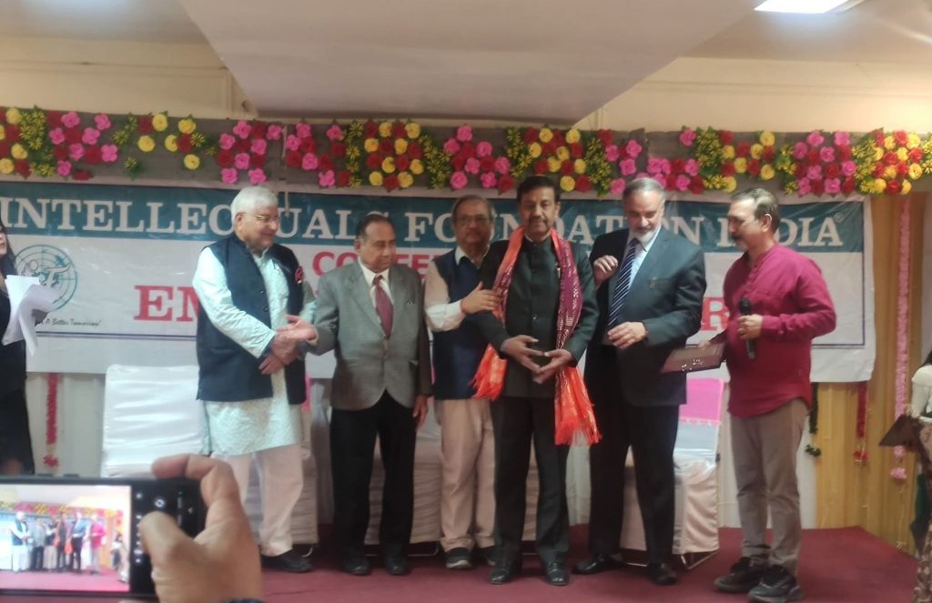 इंटेलेक्चुअल फाउंडेशन ऑफ इंडिया द्वारा प्रोफेसर डा प्रमोद शर्मा को इंटेलेक्चुअल रत्न सम्मान 2025 से अलंकृत किया गया।देहरादून में आयोजित ऑल इंडिया इंटेलेक्चुअल कॉन्फ्रेंस में फाउंडेशन के अध्यक्ष डॉ एस फारूकी ने उन्हें यह सम्मान दिया।इस राष्ट्रीय कॉन्फ्रेंस का थीम था एमपावर एंड इंस्पायर।फाउंडेशन के राष्ट्रीय महासचिव हर्ष निधि शर्मा ने कहा कि प्रोफेसर डा प्रमोद शर्मा के शैक्षणिक,सामाजिक और मानवता के उत्थान के लिए किए गए कार्यों के दृष्टिगत फाउंडेशन की राष्ट्रीय चयन समिति ने ये सम्मान देने का निर्णय लिया।