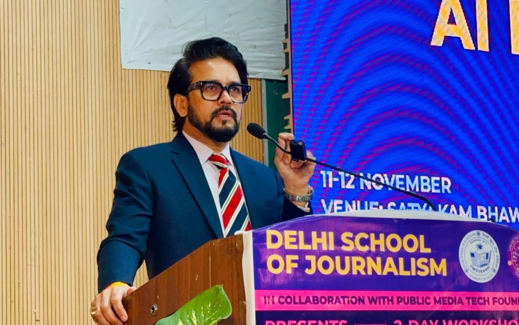 पूर्व केंद्रीय मंत्री व हमीरपुर लोकसभा क्षेत्र से सांसद अनुराग सिंह ठाकुर ने दिल्ली स्कूल ऑफ जर्नलिज्म दिल्ली विश्वविद्यालय में ‘एआई फार एवरीवन: टूल्स,स्किल्स एंड एथिक्स’नाम से दो दिवसीय शैक्षिक कार्यशाला का उद्घाटन किया।इस महत्त्वपूर्ण आयोजन ने पत्रकारिता और मीडिया शिक्षा के क्षेत्र में आर्टिफिशियल इंटेलिजेंस ‘एआई’ को एकीकृत करने की दिशा में एक महत्त्वपूर्ण कदम उठाया है,जिससे प्रतिभागियों को तेजी से विकसित हो रहे डिजिटल परिदृश्य में पनपने के लिए आवश्यक ज्ञान और कौशल से लैस किया जा सके।