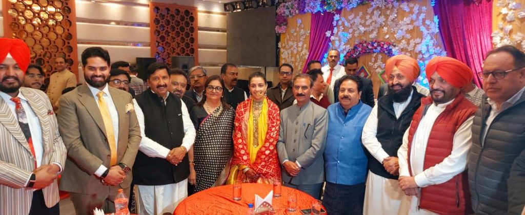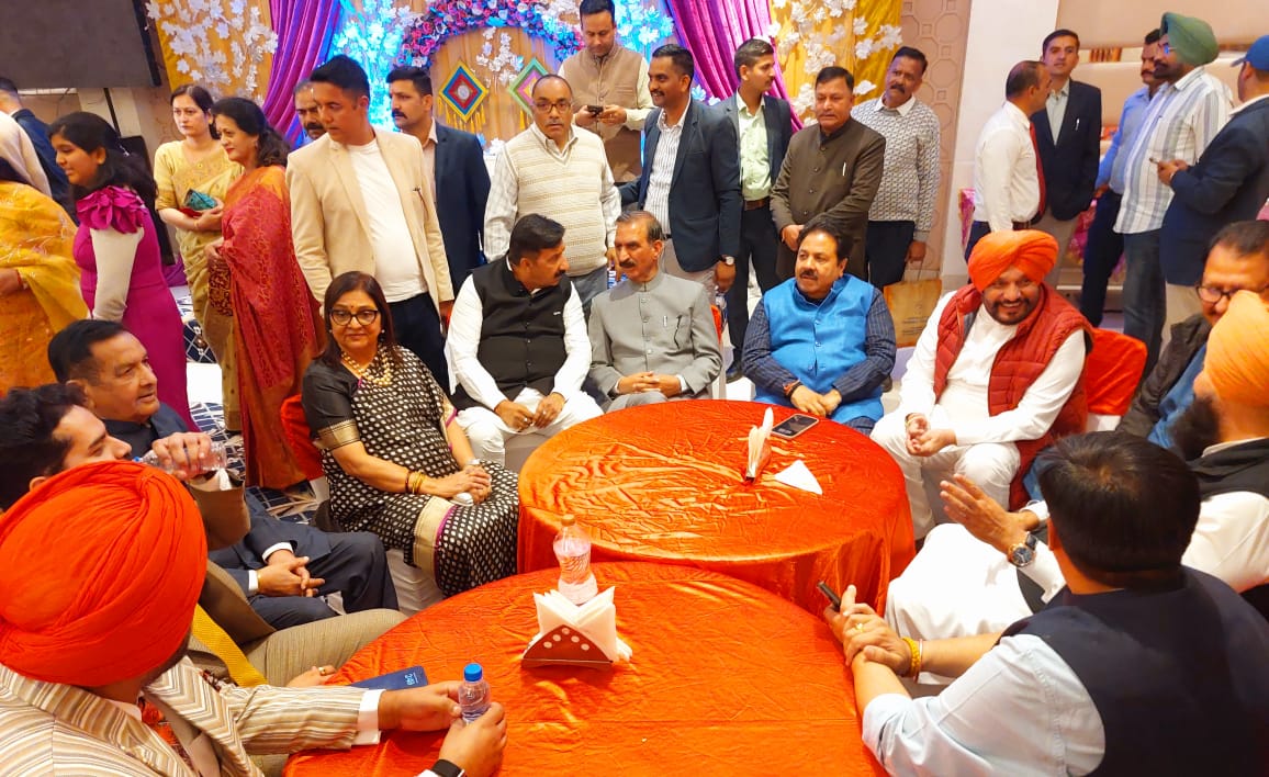 मुख्यमंत्री सुखविंदर सिंह सुक्खू शनिवार को डिप्टी सीएम मुकेश अग्निहोत्री की बेटी आस्था अग्निहोत्री और आईएएस सचिन शर्मा को आशीर्वाद देने के लिए विशेष रूप से ऊना पहुंचे।पुलिस लाइन झलेड़ा में हैलीकाॅप्टर से आए सीएम सीधे विवाह स्थल पर पहुंचे।इस दौरान डिप्टी सीएम सहित अन्य सहयोगियों ने उनका सत्कार किया।