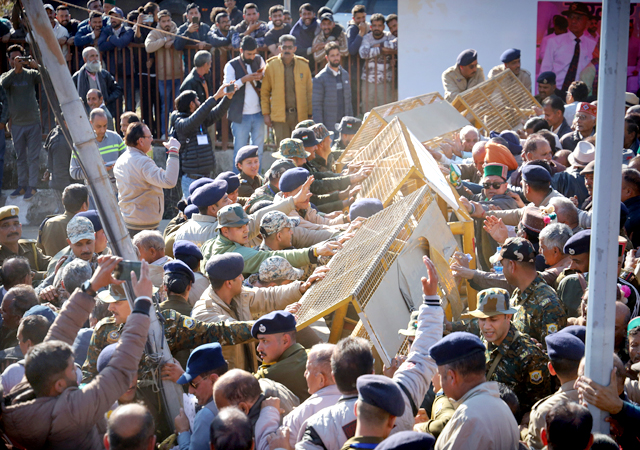जैसे ही पेंशनरों ने जोरावर स्टेडियम में चक्का जाम किया,कुछ ही देर बाद पूर्व मुख्यमंत्री और नेता प्रतिपक्ष जयराम ठाकुर सहित भाजपा के विधायक विपिन परमार,सुधीर शर्मा और पवन काजल अपनी गाड़ियों में फंस गए।पेंशनर इनकी गाड़ियों के आगे बैठ गए और पूर्व और वर्तमान सरकार के खिलाफ नारेबाजी शुरू कर दी।विरोध के चलते जयराम की गाड़ी भी 40 मिनट तक फंस गई।जयराम ने पेंशनरों से बातचीत की और अपनी बात रखने की कोशिश की,लेकिन पेंशनरों का गुस्सा शांत नहीं हुआ।जयराम ने पेंशनरों से कहा कि भाजपा ने भी विधानसभा में इन मुद्दों को उठाया था और उनकी बातों को सरकार तक पहुंचाया था।सड़क पर जाम और धरना जारी रहने के बाद एडीएम शिल्पी बेक्टा और एएसपी बीर बहादुर समेत अन्य अधिकारी मौके पर पहुंचे।इन अधिकारियों ने विभिन्न पेंशनर संगठनों के प्रतिनिधियों से बातचीत की और 18 पेंशनर संगठनों के लगभग 36 प्रतिनिधियों को विधानसभा परिसर में जाने की अनुमति दी।इसके बाद अन्य पेंशनर बाहर सड़क पर बैठे रहे।