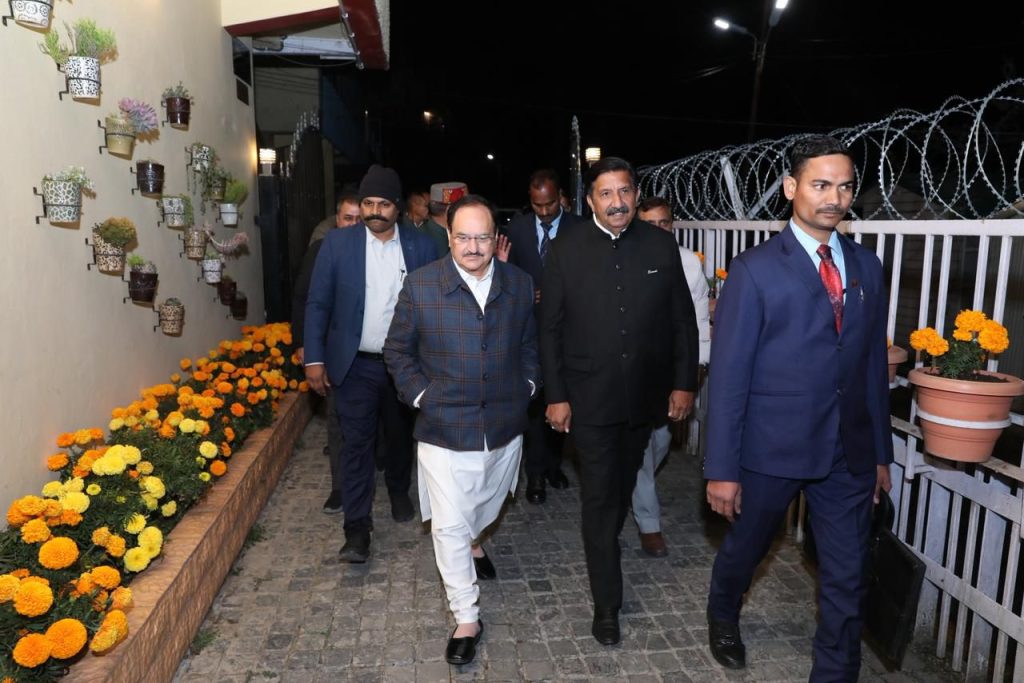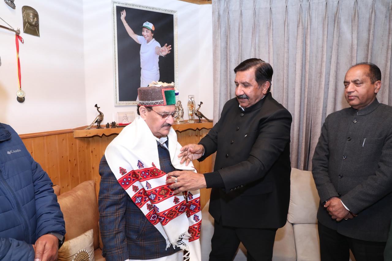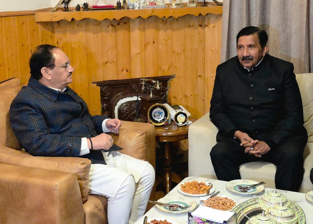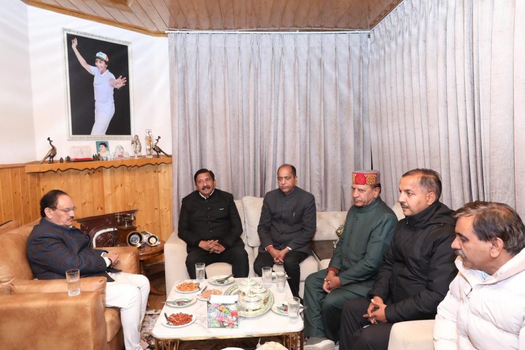 भाजपा के राष्ट्रीय अध्यक्ष जगत प्रकाश नड्डा शुक्रवार शाम को छोटा शिमला स्थित उपमुख्यमंत्री मुकेश अग्निहोत्री के आवास पर पहुंचे।इस दौरान उन्होंने उपमुख्यमंत्री की बेटी डॉ.आस्था अग्निहोत्री के विवाह अवसर पर हार्दिक बधाई व शुभकामनाएं दीं।मुलाकात के दौरान दोनों वरिष्ठ नेताओं ने अपने राजनीतिक एवं निजी अनुभवों को साझा किया और पुराने दिनों की स्मृतियों को भी ताजा किया।