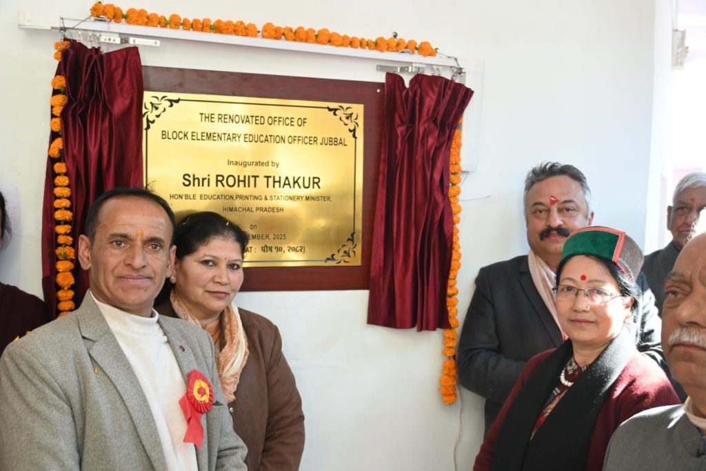 प्रारंभिक शिक्षा अधिकारी जुब्बल के कार्यालय भवन का लोकार्पण:शिक्षा मंत्री ने खंड प्रारंभिक शिक्षा अधिकारी,जुब्बल के नवीनीकृत कार्यालय भवन का लोकार्पण किया।इस भवन के निर्माण पर 27 लाख रुपये व्यय किए गए हैं।उन्होंने कहा कि नवीन भवन से विभागीय अधिकारियों एवं कर्मचारियों को बेहतर कार्य सुविधा प्राप्त होगी,जिससे शिक्षा व्यवस्था और अधिक सुदृढ़ होगी।
