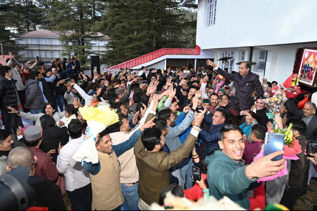 शिमला के पूर्व विधायक और शहरी विकास मंत्री सुरेश भारद्वाज पूर्व मुख्यमंत्री को बधाई देने के बाद नाटी पर थिरकते नजर आए।इस मौके पर करसोग के विधायक दीपराज और जुब्बल कोटखाई से भाजपा प्रत्याशी रहे चेतन बरागटा ने भी ढोल नगाड़ों के साथ शक्ति प्रदर्शन कर जयराम ठाकुर को बधाई दी।