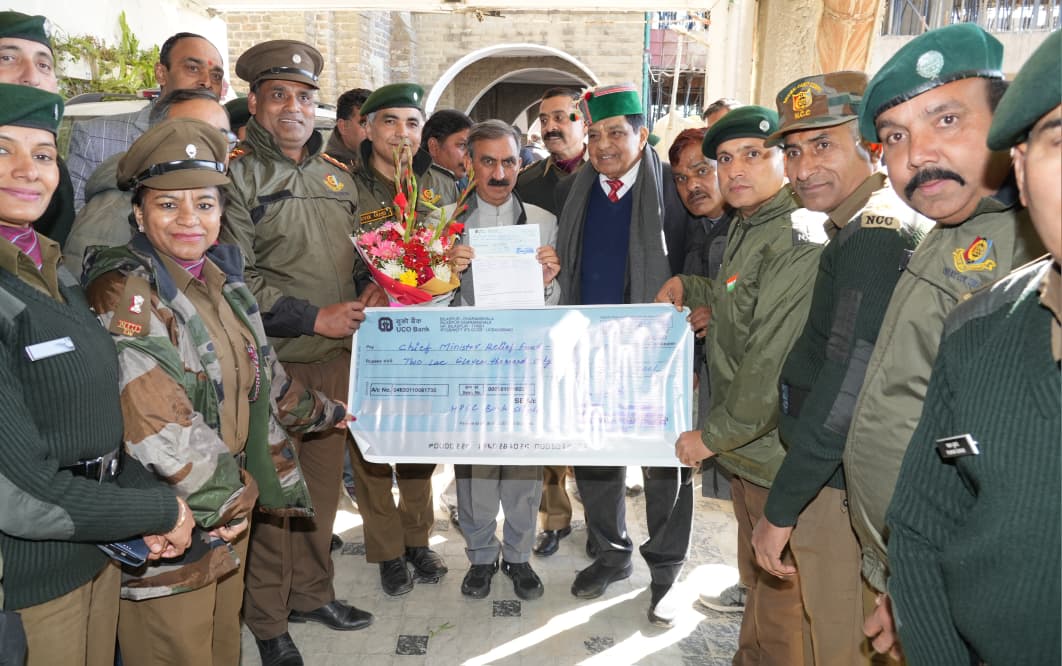 मुख्यमंत्री ठाकुर सुखविन्द्र सिंह सुक्खू को यहां वेल्फेयर एसोसिएशन ऑफ एनसीसी ऑफिसरज ऑफ हिमाचल प्रदेश ने सीएम राहत कोष के लिए 2.11 लाख रुपये का चेक भेंट किया।मुख्यमंत्री ने अंशदान के लिए आभार व्यक्त करते हुए कहा कि इस तरह के योगदान विपरीत परिस्थितियों में पीड़ित लोगों की मदद के लिए अत्यन्त महत्त्वपूर्ण साबित होते हैं।इस अवसर पर स्वास्थ्य मंत्री डॉ.(कर्नल)धनी राम शांडिल,एसोसिएशन के अध्यक्ष सुरेश कुमार,उपाध्यक्ष विवेकानंद,महासचिव अमरजीत,सदस्य रिपिन परमार,मेजर (प्रो.)लक्ष्मी और गणमान्य व्यक्ति उपस्थित थे।