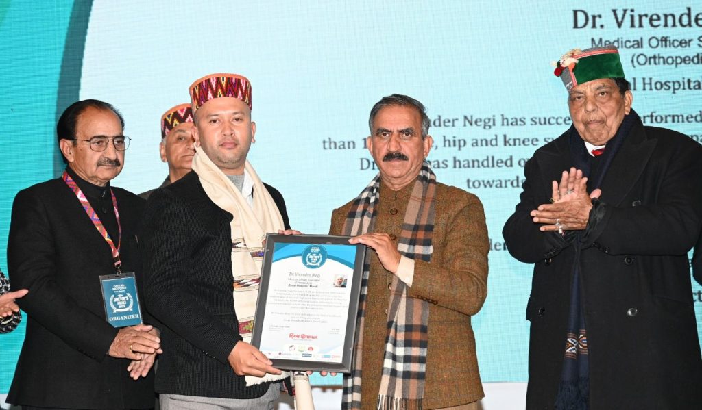 मुख्यमंत्री ठाकुर सुखविन्द्र सिंह सुक्खू ने पीटरहॉफ में प्रतिष्ठित दैनिक समाचार पत्र द्वारा आयोजित ‘डॉक्टर्स अवार्ड 2025’ समारोह की अध्यक्षता की।इस अवसर पर मुख्यमंत्री ने कहा कि वर्तमान में समाचार पत्र लोगों को सूचनाएं उपलब्ध करवाने के साथ-साथ जीवन में बेहतर प्रदर्शन करने और आगे बढ़ने के लिए बेहतर मंच प्रदान कर रहे हैं।यह समाचार पत्र महिलाओं और युवाओं को विभिन्न प्रेरणादायक कार्यक्रमों के माध्यम से मंच प्रदान कर रहा है और ‘डॉक्टर्स अवार्ड 2025’ भी ऐसा ही एक मंच है।मुख्यमंत्री ने एचओडी नेफ्रोलॉजी एम्स बिलासपुर के प्रो.(डॉ.)संजय विक्रांत,अटल इंस्टीट्यूट ऑफ मेडिकल सुपर स्पेशियलिटीज शिमला के प्रिंसिपल,प्रोफेसर एवं प्रमुख प्रो.(डॉ.)बृज शर्मा,राष्ट्रीय आयुर्वेद संस्थान जयपुर के कुलपति प्रो.संजीव शर्मा,एआईएमएसएस चमियाना के प्रोफेसर एवं प्रमुख न्यूरोलॉजी डॉ.सुधीर शर्मा,आईजीएमसी शिमला के रूमेटोलॉजिस्ट(मेडिसिन विभाग) के डॉ.विकास शर्मा,एआईएमएसएस चमियाना के एसोसिएट प्रोफेसर यूरोलॉजी डॉ.कैलाश बरवाल,पंडित जवाहर लाल नेहरू राजकीय चिकित्सा महाविद्यालय चंबा के एचओडी ऑर्थोपेडिक्स डॉ.मणिक सहगल,टांडा के न्यूरोसर्जन (ब्रेन एवं स्पाइन विशेषज्ञ)डॉ.मुकेश कुमार,टांडा के सहायक प्रोफेसर रीनल ट्रांसप्लांट सर्जरी डॉ.अमित शर्मा,जोनल अस्पताल मंडी के मेडिकल ऑफिसर स्पेशलिस्ट (ऑर्थोपेडिक्स)डॉ.वीरेंद्र नेगी,जोनल अस्पताल मंडी के मेडिकल ऑफिसर स्पेशलिस्ट (ओबीजी)डॉ.वरुण कपूर,जोनल अस्पताल मंडी के मेडिकल ऑफिसर स्पेशलिस्ट(जनरल सर्जरी) डॉ.दीपक ठाकुर,क्षेत्रीय अस्पताल रिकांगपिओ,किन्नौर के मेडिकल ऑफिसर स्पेशलिस्ट(जनरल सर्जरी)डॉ.भारतेन्दु नागेश,अभिनम आई केयर सेंटर सोलन के विशेषज्ञ डॉ.अभिराज कुमार को उनकी निःस्वार्थ एवं असाधारण स्वास्थ्य सेवाओं के लिए सम्मानित किया गया।