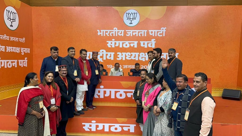 भारतीय जनता पार्टी के राष्ट्रीय कार्यालय,नई दिल्ली में राष्ट्रीय अध्यक्ष के निर्वाचन की प्रक्रिया के तहत आयोजित नामांकन कार्यक्रम में हिमाचल भाजपा ने अपनी सशक्त उपस्थिति दर्ज कराकर पार्टी के आंतरिक लोकतंत्र और मजबूत सांगठनिक ढांचे को एक बार फिर विश्व के सामने प्रमाणित किया।