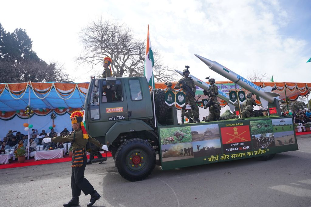 परेड:गणतंत्र दिवस के अवसर पर रिज मैदान पर परेड कमांडर लेफ्टिनेंट शाश्वत तिवारी जे एंड के राईफल के अगुवाई में मार्च पास्ट किया।