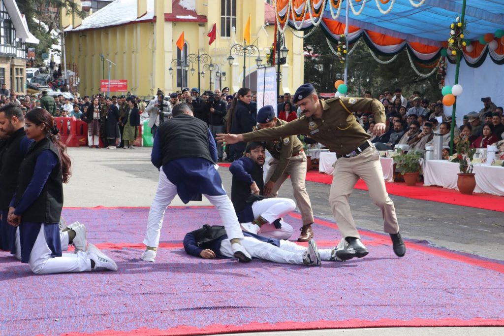 विभिन्न विभागों की झांकियों का प्रदर्शन:रिज मैदान पर गणतंत्र दिवस के अवसर पर पुलिस विभाग की झांकी आकर्षण का केंद्र रही।झांकी में चिट्टा जैसी गंभीर सामाजिक बुराई के विरुद्ध किए जा रहे सुदृढ़ एवं निरंतर प्रयासों को दर्शाया गया।