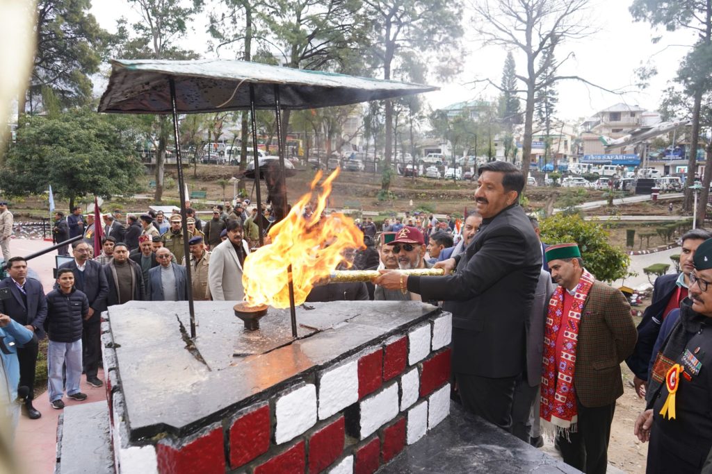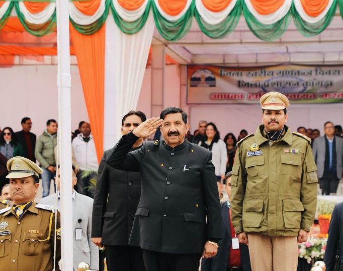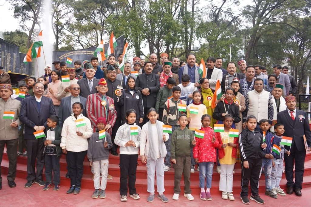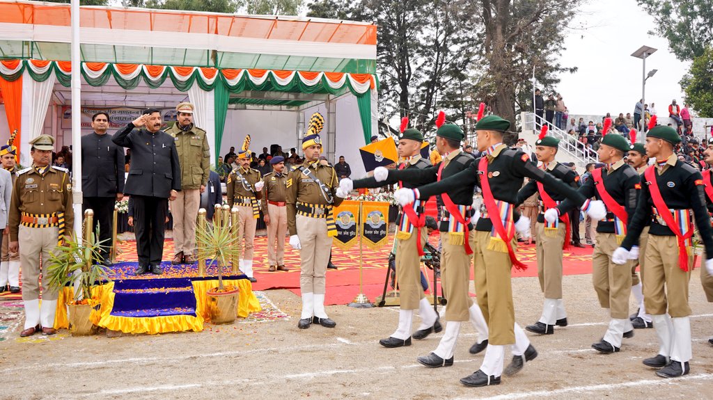 धर्मशाला,27 जनवरी।उप-मुख्यमंत्री मुकेश अग्निहोत्री ने सोमवार को कांगड़ा जिले के मुख्यालय धर्मशाला के पुलिस मैदान में आयोजित जिला स्तरीय 77वें गणतंत्र दिवस समारोह की अध्यक्षता की।उन्होंने इस अवसर पर राष्टीय ध्वज फहराया तथा सेना,पुलिस,होम गार्ड्स,एनएसएस और स्काउट एवं गाइड्स की टुकड़ियों द्वारा प्रस्तुत शानदार परेड की सलामी ली।