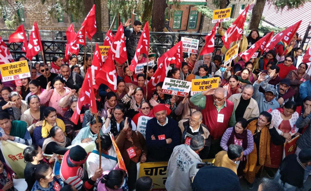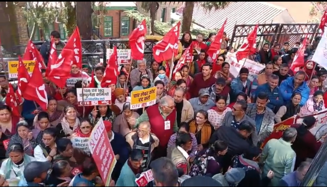 केंद्रीय ट्रेड यूनियनों और राष्ट्रीय स्तर की फेडरेशन के संयुक्त मंच के आह्वान पर वीरवार को राजधानी शिमला में चार लेबर कोड के विरोध में प्रदर्शन किया गया और रैलियां निकालीं गईं।मजदूरों के विभिन्न संगठनों ने मिलकर सीटू के बैनर तले पुराने बस अड्डे से कार्ट रोड,सब्जी मंडी से नाज और वहां से लोअर बाजार होते हुए सीटीओ चौक तक रैली निकाली तथा प्रदर्शन किया जिसमें आईजीएमसी,केएनएच,चमयाना,मानसिक रोगियों के अस्पताल,आयुर्वेदिक अस्पताल के कांट्रेक्ट वर्कर,आंगनबाड़ी,मिड डे मील,होटल,तहबाजारी,सीवरेज ट्रीटमेंट प्लांट,नगर निगम शिमला की सैहब सोसायटी,विशाल मेगामार्ट,कालीबाड़ी मंदिर के मजदूरों ने भाग लिया।