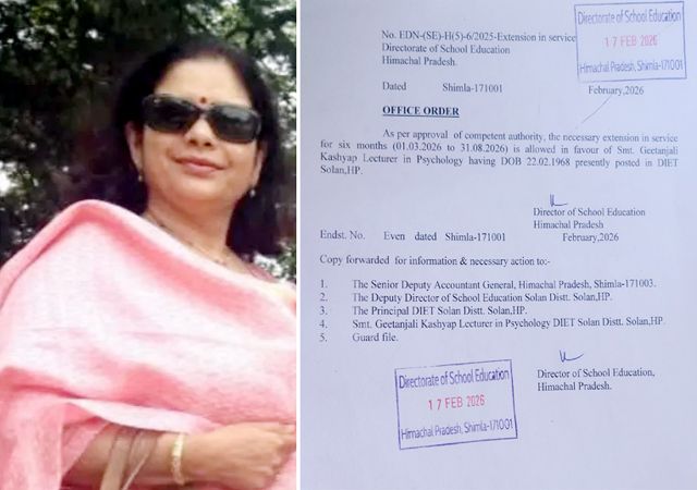 प्रदेश सरकार ने डाइट सोलन में कार्यरत स्वास्थ्य मंत्री धनीराम शांडिल की बेटी को छह माह का सेवा विस्तार दे दिया है।स्कूल शिक्षा निदेशालय ने 1 मार्च से 31अगस्त तक सेवा विस्तार देने का कार्यालय आदेश जारी किया है।प्रवक्ता साइकोलॉजी गीतांजलि कश्यप के पति डॉ.राजेश सोलन सीट से भाजपा प्रत्याशी रह चुके हैं।इन्होंने दो बार अपने ससुर धनीराम शांडिल के खिलाफ चुनाव भी लड़ा है।शिक्षा निदेशालय की ओर से जारी कार्यालय आदेश के अनुसार जिला शिक्षा एवं प्रशिक्षण संस्थान सोलन में तैनात प्रवक्ता साइकोलॉजी गीतांजलि कश्यप को छह महीने का सेवा विस्तार दिया गया है।गीतांजलि कश्यप ने इस माह 28 तारीख को 58 वर्ष की आयु पूर्ण कर सेवानिवृत्त होना था।हिमाचल प्रदेश में आर्थिक तंगी का हवाला देने वाली कांग्रेस सरकार अब अपने ही फैसले को लेकर सवालों के घेरे में है।