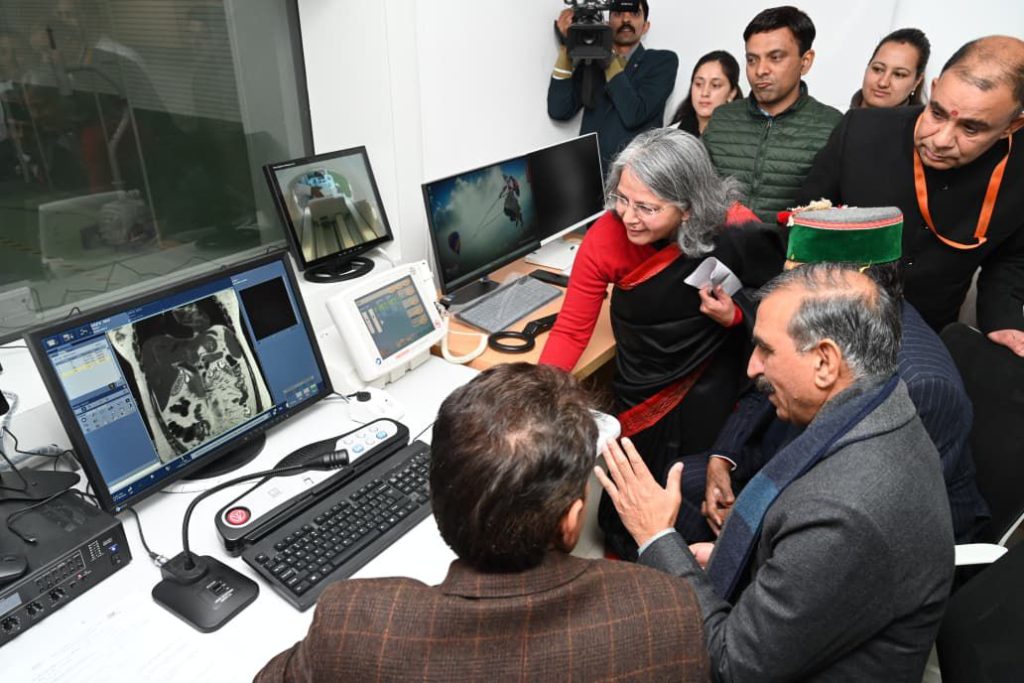 मुख्यमंत्री ठाकुर सुखविन्द्र सिंह सुक्खू ने इंदिरा गांधी चिकित्सा महाविद्यालय शिमला में लगभग 23 करोड़ रुपये की लागत से स्थापित अत्याधुनिक 3 टेस्ला एमआरआई मशीन का शुभारम्भ किया।इस अवसर पर मुख्यमंत्री ने कहा कि प्रदेश सरकार ने आईजीएमसी में 20 साल पहले स्थापित पुरानी एमआरआई मशीन को अत्याधुनिक एमआरआई मशीन से बदला है।इसी तरह की हाई-एंड एमआरआई मशीन का उपयोग अखिल भारतीय आयुर्विज्ञान चिकित्सा संस्थान दिल्ली में भी किया जा रहा है।उन्होंने कहा कि प्रदेश सरकार व्यवस्था परिवर्तन के ध्येय से कार्य कर रही है और इसी सोच को साकार करते हुए चिकित्सा संस्थानों में हाई-एंड टेक्नोलॉजी युक्त उपकरण उपलब्ध करवाये जा रहे हैं।उन्होंने कहा कि चिकित्सा महाविद्यालय टांडा,शिमला, हमीरपुर,नेरचौक और चमियाणा अस्पताल में एम्स,नई दिल्ली की तर्ज पर हाई एंड टैक्नोलॉजी से सुसज्जित चिकित्सा तकनीक उपलब्ध करवाई जा रही है।